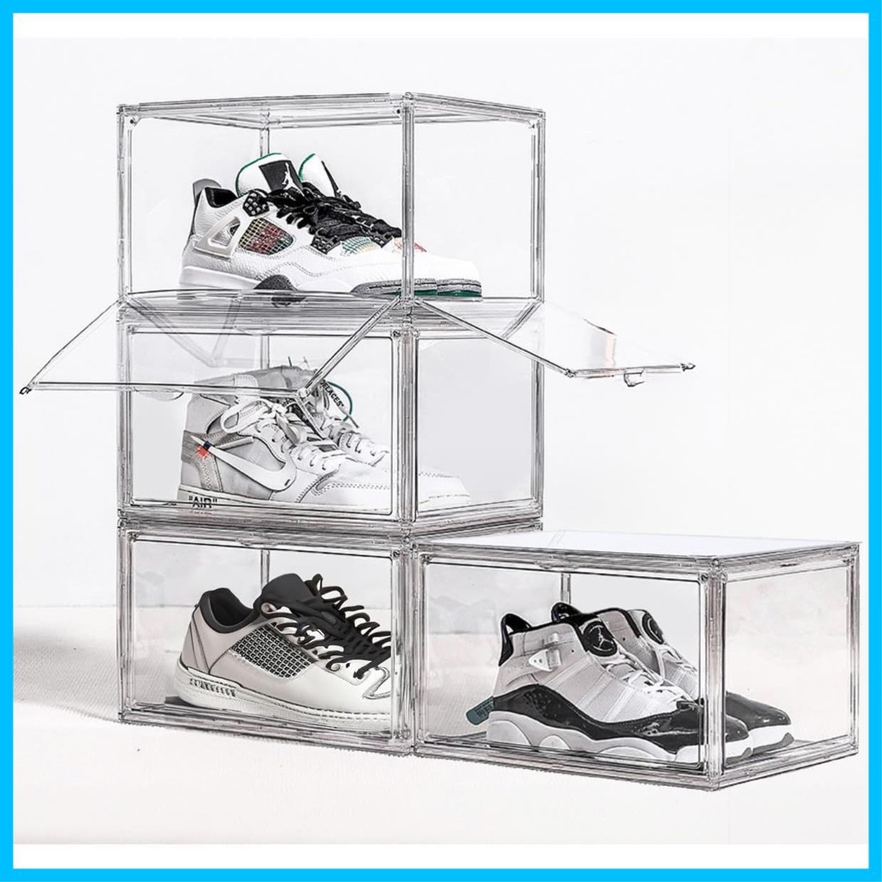 【在庫処分】ACURACE シューズボックス スニーカー ボックス 収納 ケース クリア 開閉扉 磁石 大容量 (4個セット, クリア)