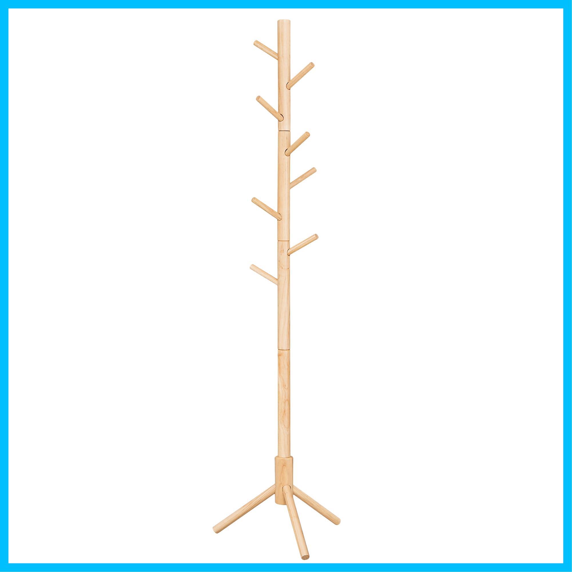 【特価セール】VASAGLE ポールハンガー おしゃれ 木製 スリム 頑丈 コートハンガー キッズ 玄関 ハンガーポール コート掛け 帽子掛け スタンド バッグスタンド 服掛け バッグ掛け 上着掛け ハンガーラック カバー掛け 服かけスタンド 落ちにくい 47x47x175cm 木の色 RCR004N01