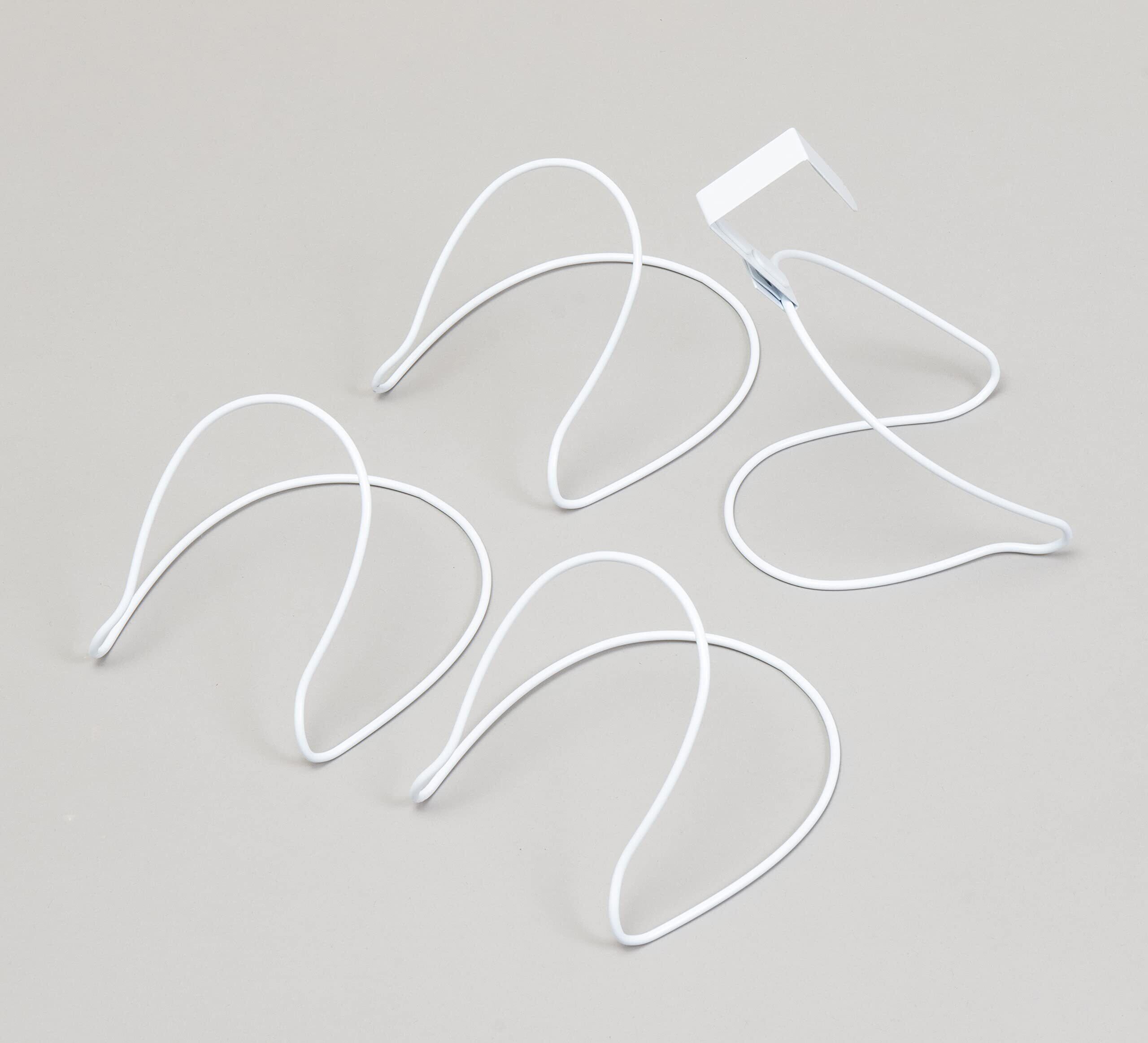【商品仕様】:サイズ/約幅19×奥行10×高さ63cm[4本連結時・フック含む]、内容/ハンガー:4本・ドアフック:1個・ネジ:1個・ハンガー連結固定用シール:8枚、カラー/ホワイト、材質/鉄