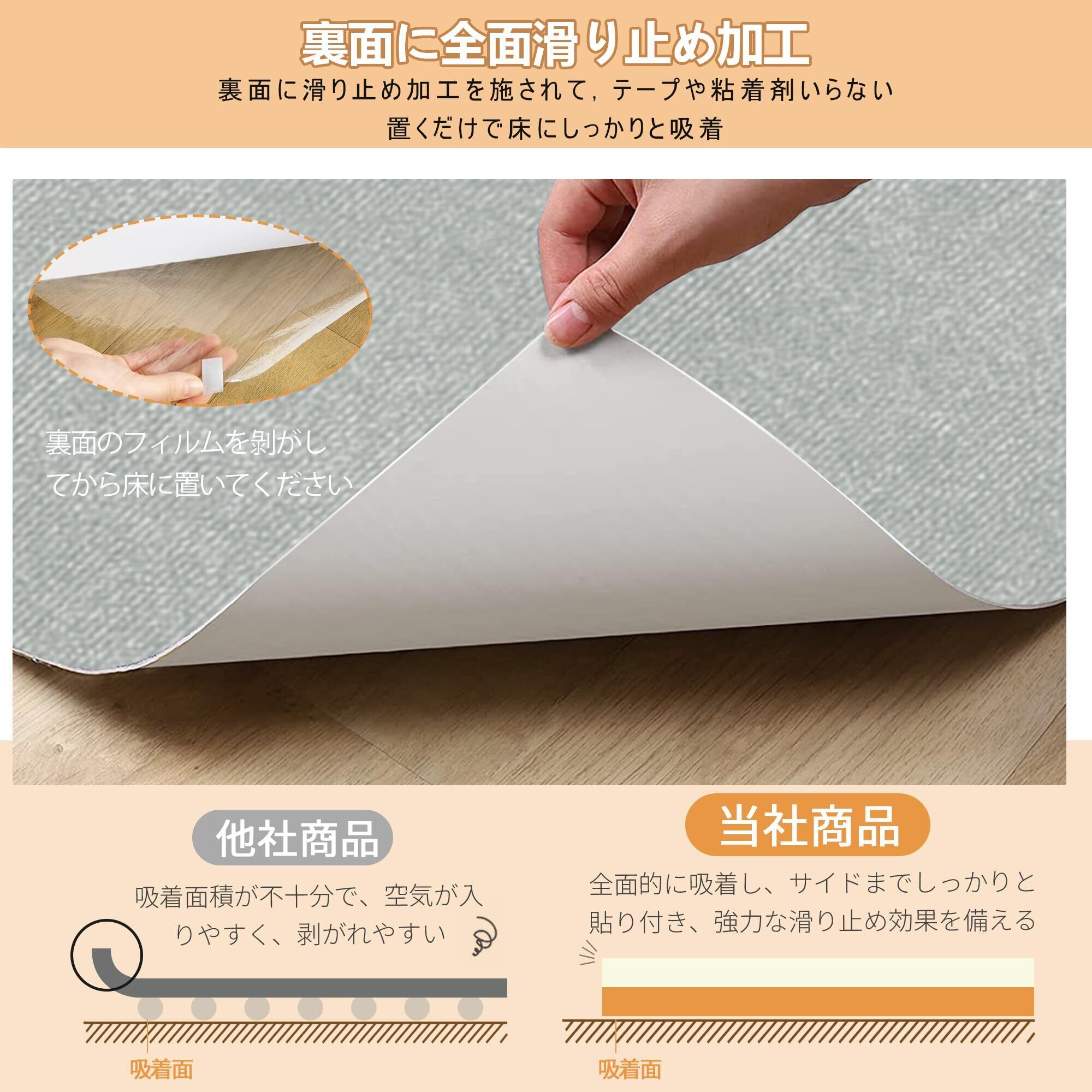 【キズ防止】キャスター付きの椅子の中には、床を傷つけたり、足跡を残したり、床をへこませたりするものがあります。 滑り止めマットを床に置くと、引っかき傷、汚れ、へこみを防ぐことができます。 床ヘしっかり吸着し、椅子を動かす際にズレにくく、床を傷や凹みから守ってくれる。椅子がスムーズに動かせ、より快適なテレワークを実現。