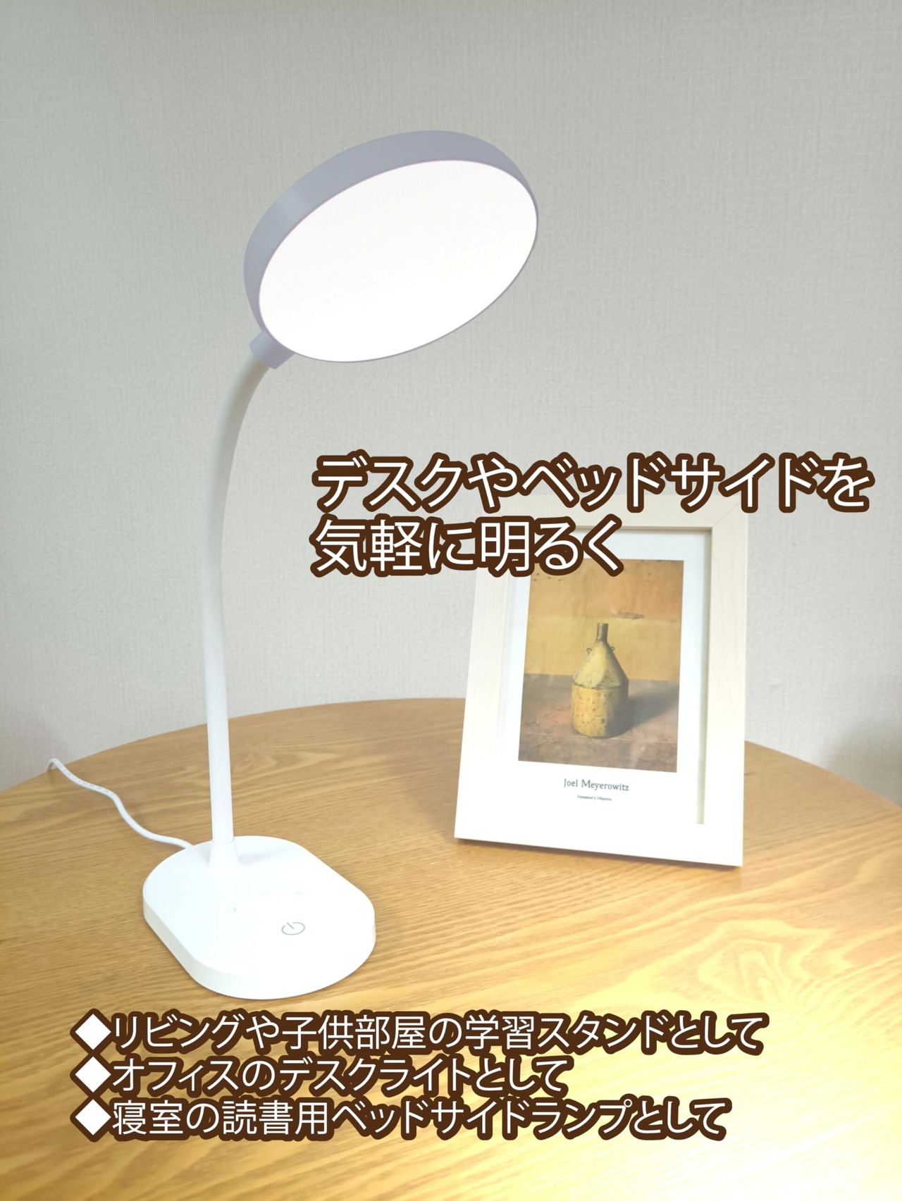 しっかりした明るさの便利なUSB電源のデスクライト スタンドライト、卓上ライトは、タッチ式スイッチで3段階の明るさ調節機能があり、読書やデスクワークまた、ベッドサイドなどに最適な灯りでお使いいただけます。コンパクトでスペースを取らず、USB端子に接続するだけで簡単に使用できます。3段階の明るさ調節機能によりお好みの明るさを選んで読書、作業スペースやベッドサイドなどを照らせます。明るいLEDライトで省エネルギーで、長時間の使用にも最適です。フレキシブルアームで角度調整が可能なため、好みの角度で照らせます。デスクに置いても邪魔になりません。 スマホスタンド付きでオフィスや自宅での作業、読書、ベッドサイド等にお好みの明るさと省スペースを両立したい方におすすめのデスクライトです。給電ケーブル長さ約85cm ※充電式ではありません。USB電源(ACアダプター別売)