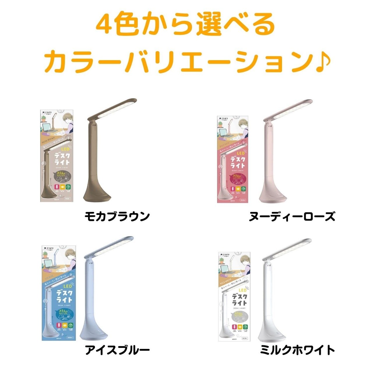 色:ヌーディーローズ 省スペースで明るく学べるLEDデスクライト! 机上で邪魔にならないスリムなデザイン学習に最適な目に優しい昼白色3段階に明るさを調整できる! 充電用のUSBコード付き。1年間の付き※一般的な使用方法で生じた故障や不具合に対応