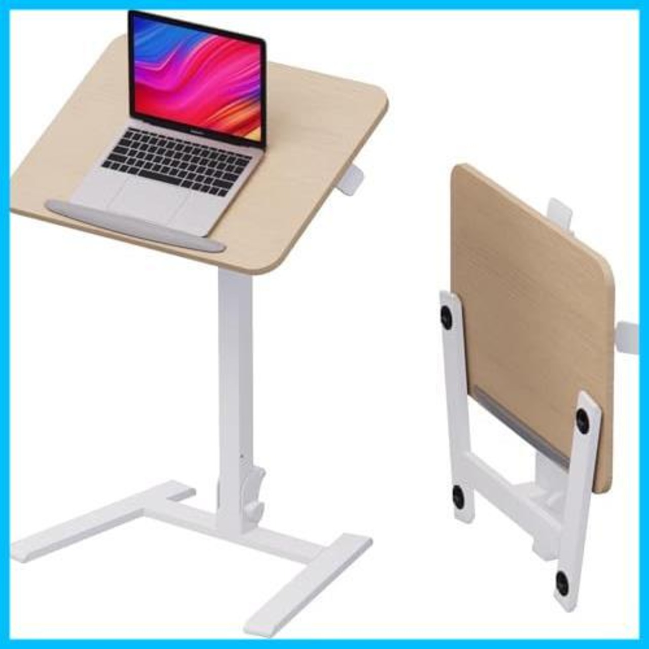 Alawooder 昇降式 デスク ガス圧 【届いてすぐ使える】 キャスター付き テーブル 折り畳み パソコン デスク ベッドサイド テーブル 高さ調整 pc デスク ガス式無段階調節昇降サイドテーブル 介護用 ベッドテーブル 在宅ワーク テレワーク 天板角度調整可 ベージュ beige