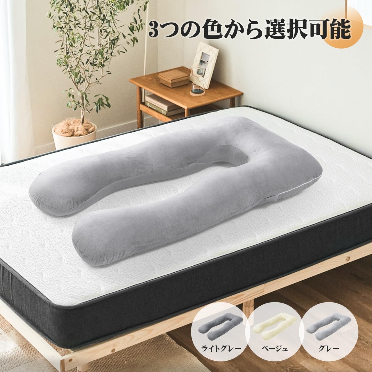 抱き枕-ATOPEN 妊婦 男女兼用 だきまくら 全身を包み込む抱き枕 低反発授乳クッション マタニティ 多機能u字枕 もちもち 体圧分散 腰楽 横向き寝 気持ちいい カバー洗える(ライトグレー) 140*80