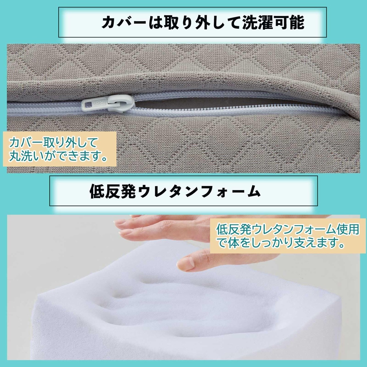 側地は取り外して洗濯可能、ひざ下まくらや背もたれクッションとしても活躍!