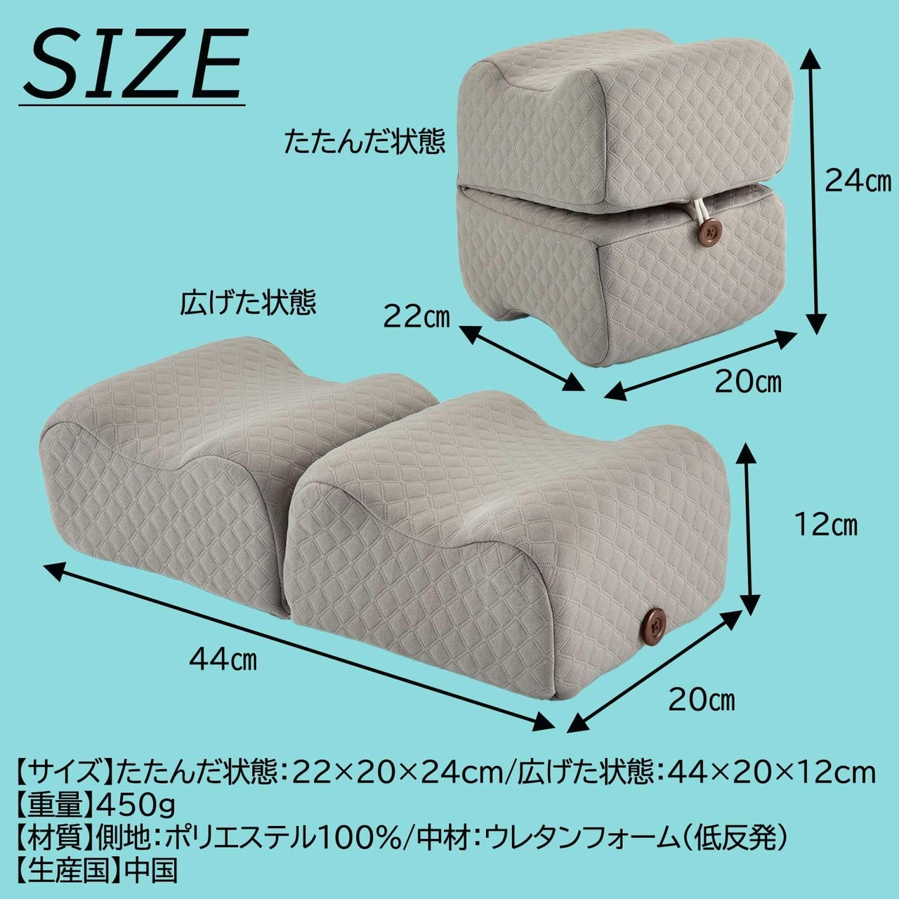 【サイズ】たたんだ状態:22×20×24cm/広げた状態:44×20×12cm【重量】450g【材質】側地:ポリエステル100%/中材:ウレタンフォーム(低反発)【生産国】中国