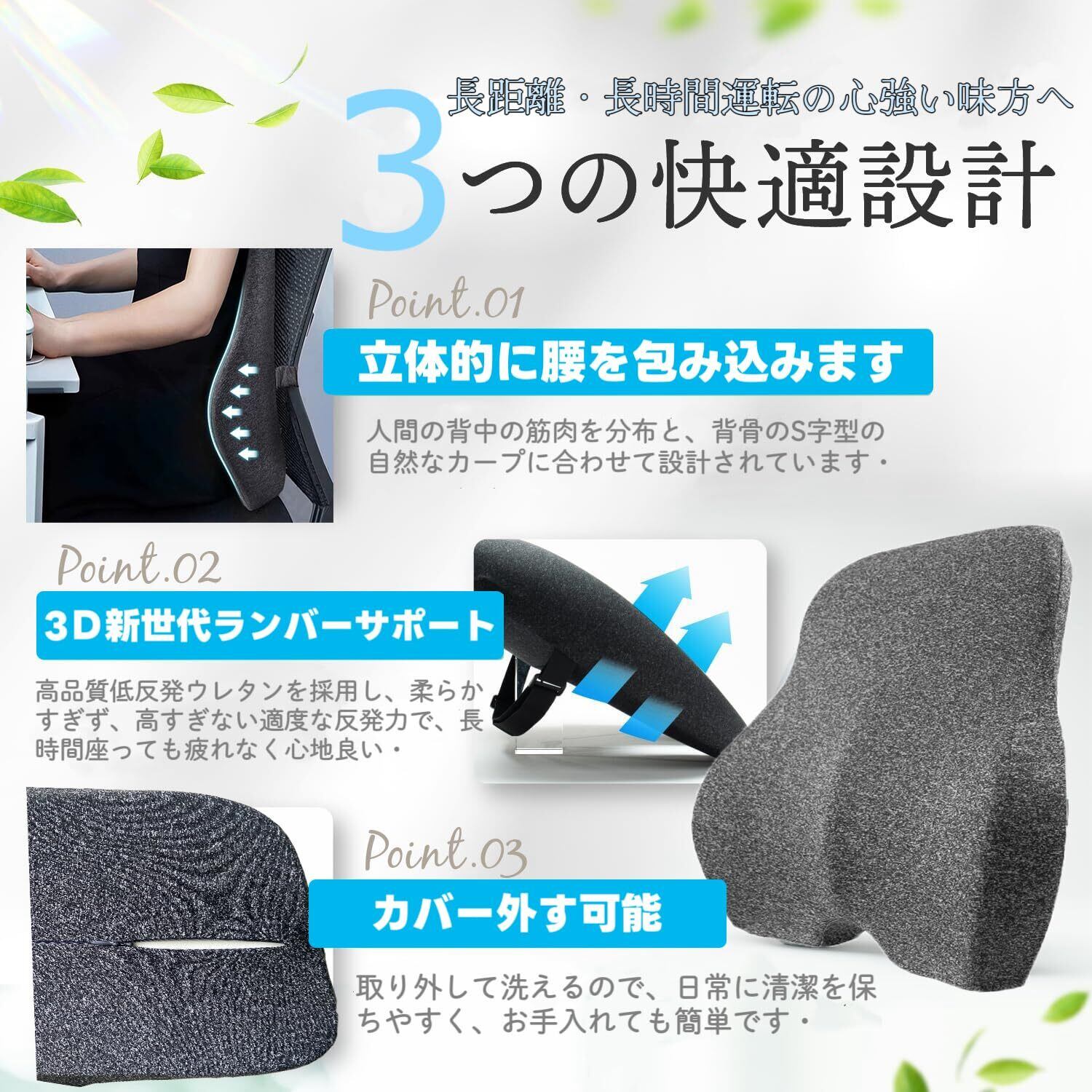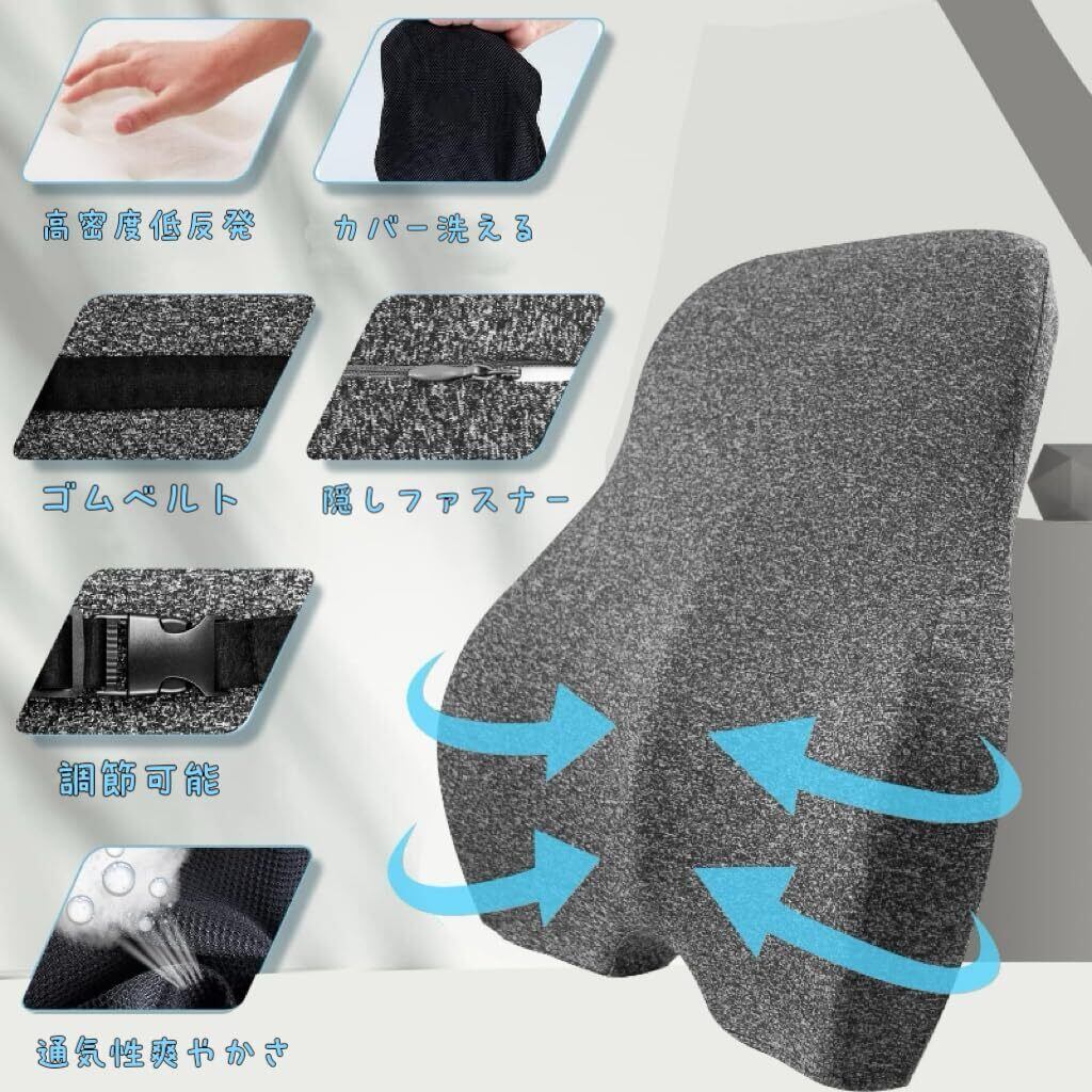 Vtesey 腰痛 クッション 低反発 ランバーサポート 車/オフィス椅子用 シートクッション 腰痛改善グッズ 腰枕 人間工学 腰当て 背もたれ腰サポート 高密度クリア 取付バンド調節可能 通気性 カバー洗える (ダークグレー)
