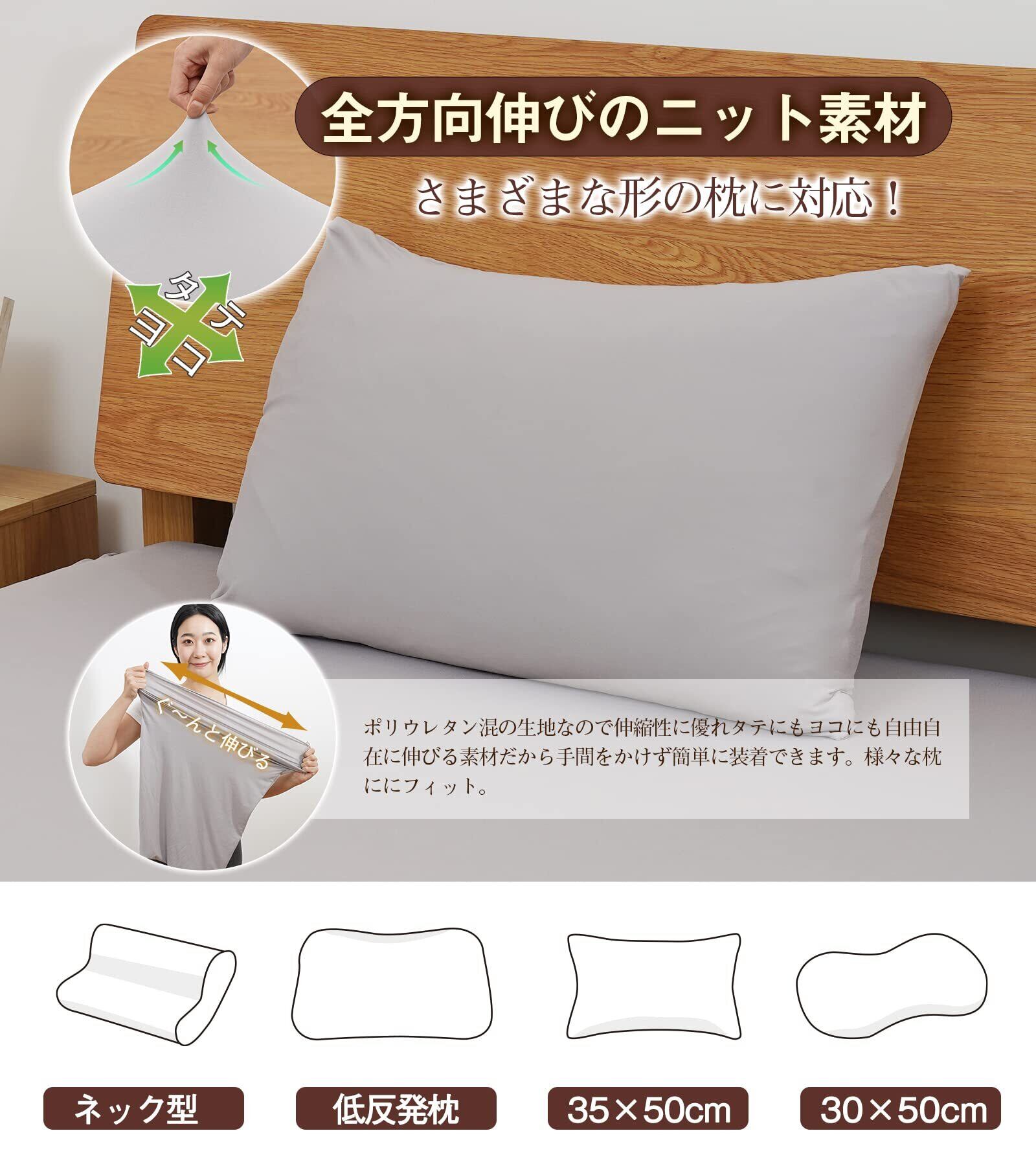 【3Dストレッチ生地&ピッタリフィット枕カバー】お客様のご要望にお応えできるように、仕上がりの美しい、綺麗にフィットするまくらカバーを作りました。ポリウレタン混の生地なので伸縮性に優れタテにもヨコにも自由自在に伸びる素材だから手間をかけず簡単に装着できます。➨異型枕もキレイにフィット。シワになりにくいから気になる取り付け時のシワも アイロンいらずでキレイにフィット。面倒家事も短縮できます。