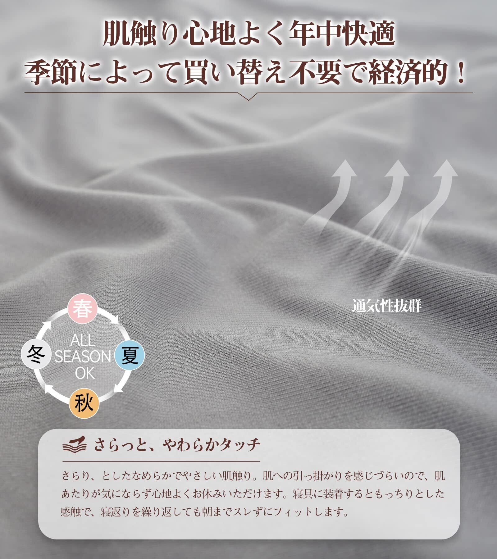【超柔らかいTシャツ素材&オールシーズン快適】枕カバーの生地はまるでおTシャツのようで柔らかくなめらかな肌触りで心地よく、最初から肌になじむように仕上げました。肌への引っ掛かりを感じづらいので、肌あたりが気にならず心地よくお休みいただけます。暖かい季節( 春 夏 )も、寒い季節( 秋 冬 )も 1年を通して長い期間、快適にお使い頂けます。