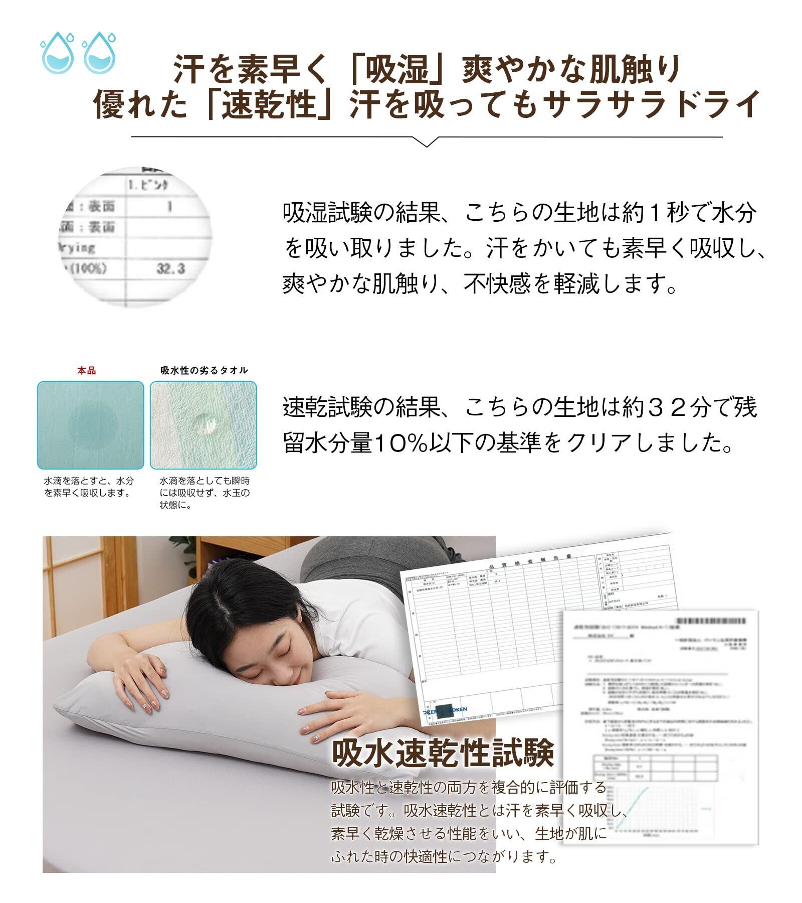 【0秒瞬間吸水&速乾&いつも清潔】ピローケースは通気性と吸湿・放湿性が優れて、特に夏の場合は、汗をかいても素早く湿気を吸い取り発散してくれるので、いつでもサラサラとした状態が保てます。ご家庭の洗濯機で手軽にお手入れができるので、常に清潔に、快適にお使いいただけます。お洗濯の後シワになりにくいからお手入れも簡単。