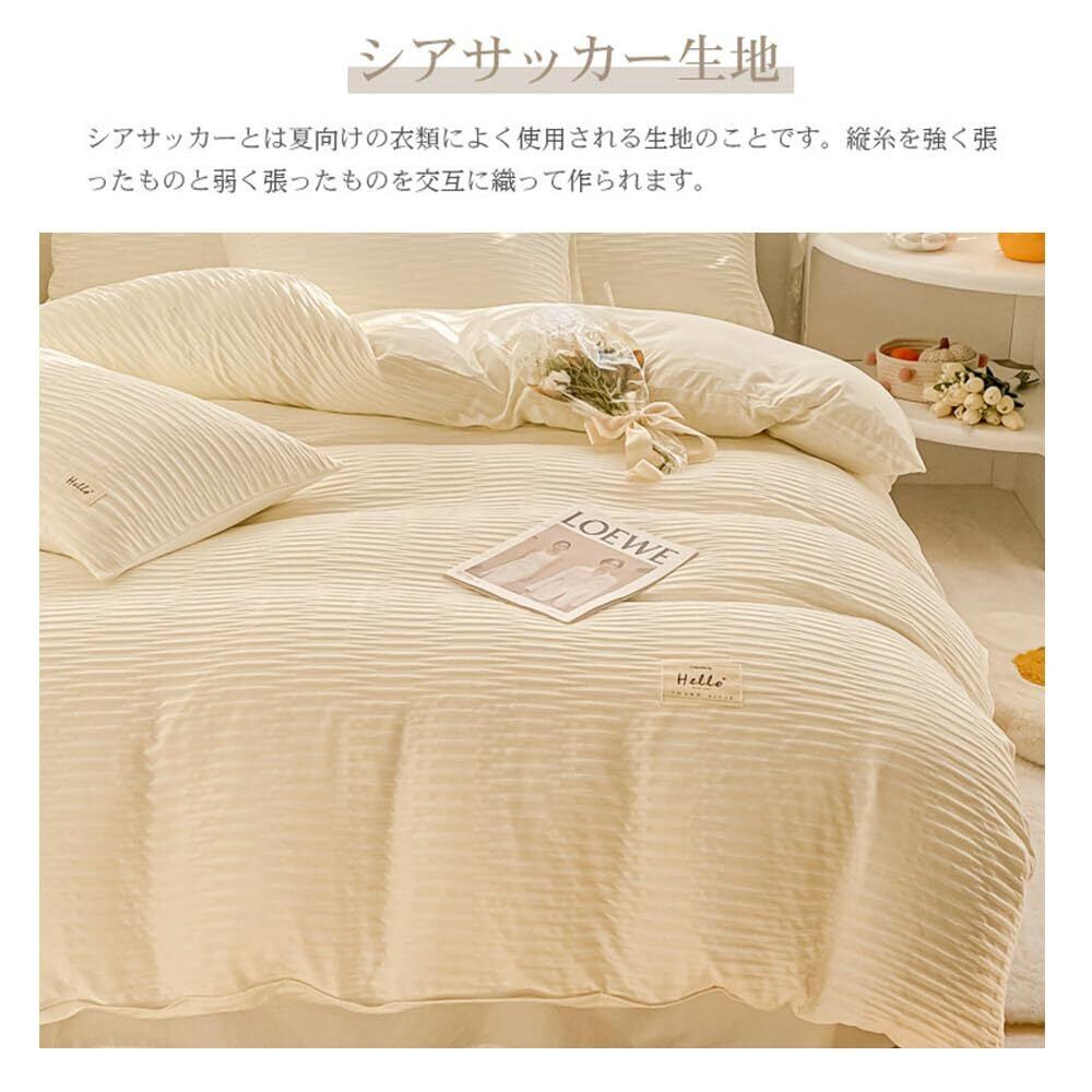 布団カバー 寝具カバー 夏用 3点セット 150×210cmシングル シアサッカー生地 掛け布団カバー ボックスシーツ 枕カバー 洋式・和式兼用 おしゃれ 北欧 肌触り 無地 ベット 洗濯機可 ホテル仕様 丸洗いOK 速乾 オールシーズン