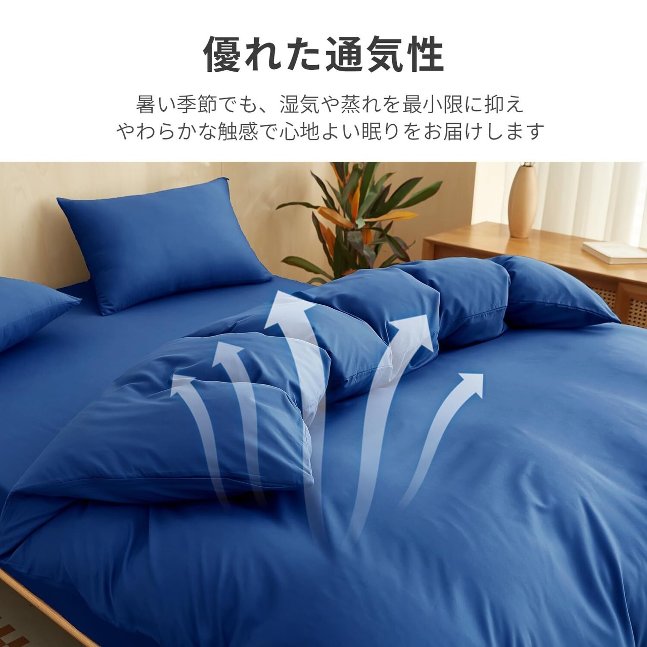 <通気性と速乾性>: ポリエステル 100%を使用するため、優れた通気性を持っています。睡眠中に生成された水分を吸収し、寝汗をかいても快適です。毛玉にりにくい、シワになりにくい。洗った後は素早く乾かすことができます。真夏から冬場までオールシーズンで快適にお使いいただける掛け布団カバーです。