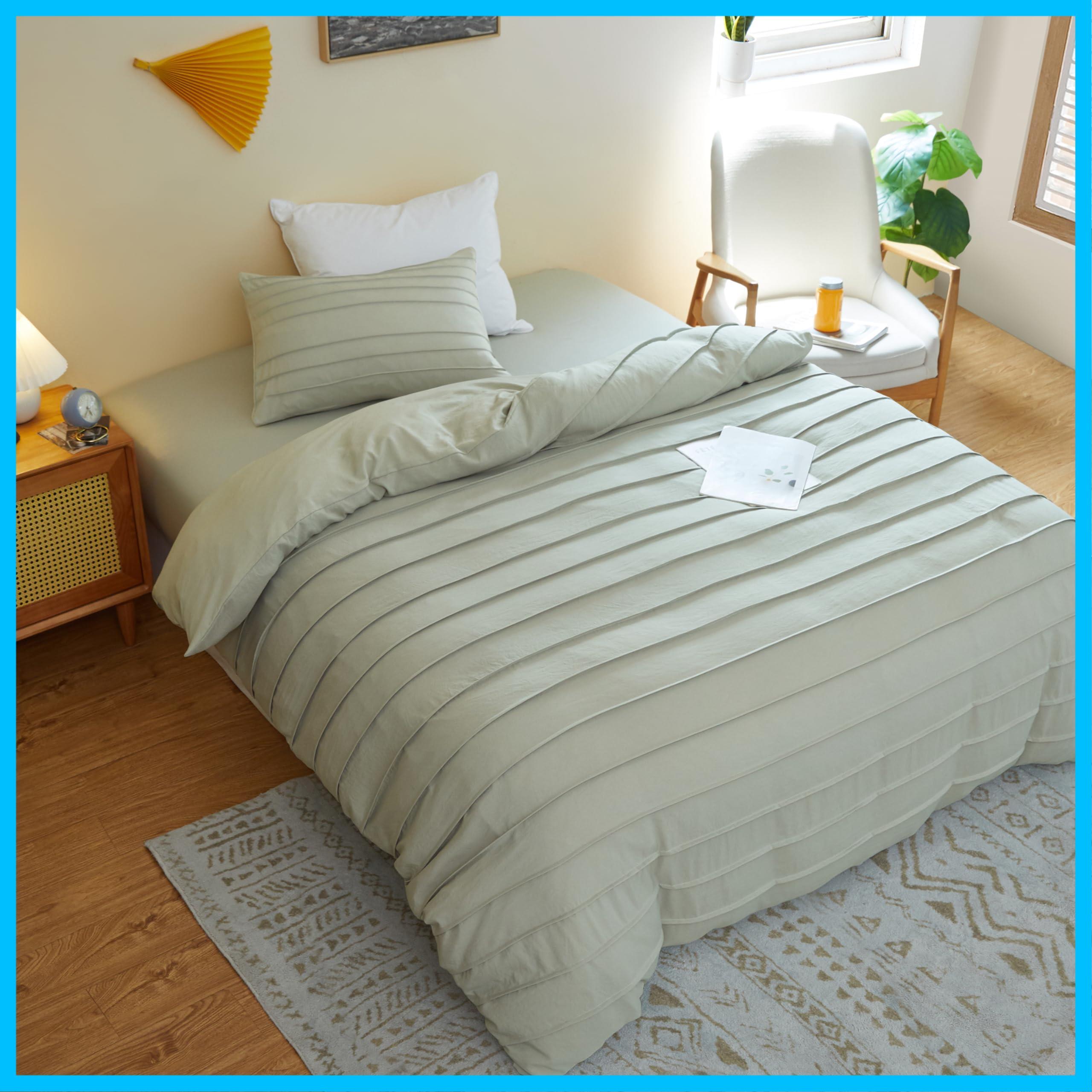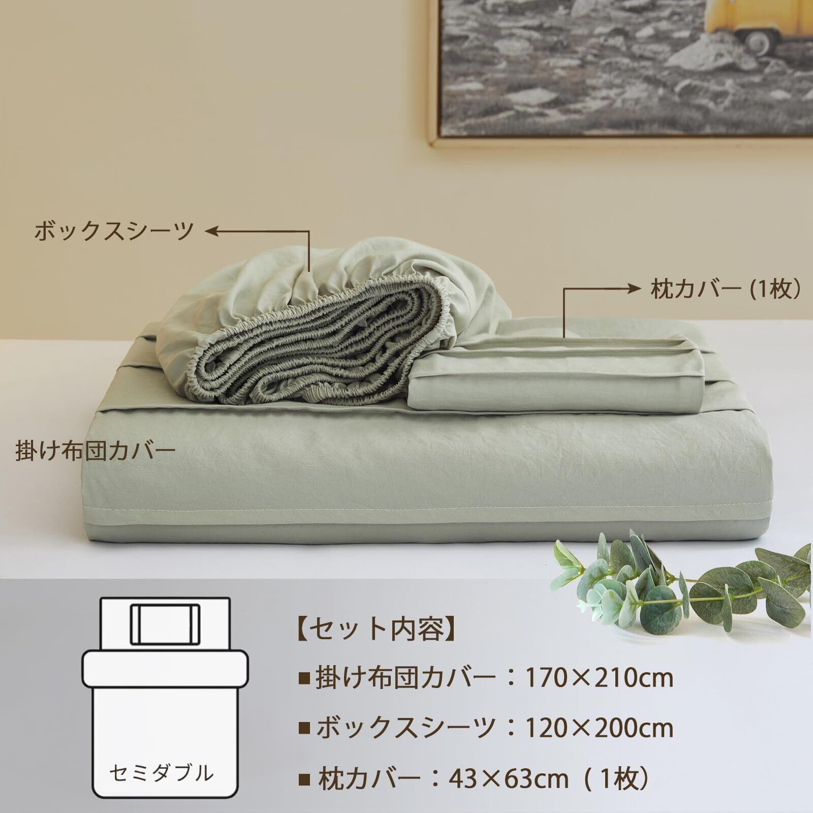 ホーメリア(Homelia) 布団カバー セミダブル 3点セット ピンタック 寝具カバーセット 洋式・和式兼用 布団カバー・ボックスシーツ・枕カバー セット 四季通用 洗い替え速乾 ライトグリーン カバーセット