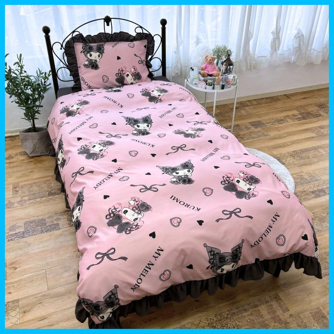 サンリオ(SANRIO) クロミ マイメロディ 真夜中のメロクロ ボリュームフリル 布団カバー3点セット 枕カバー シーツ 掛布団カバー シングル SB-677-S