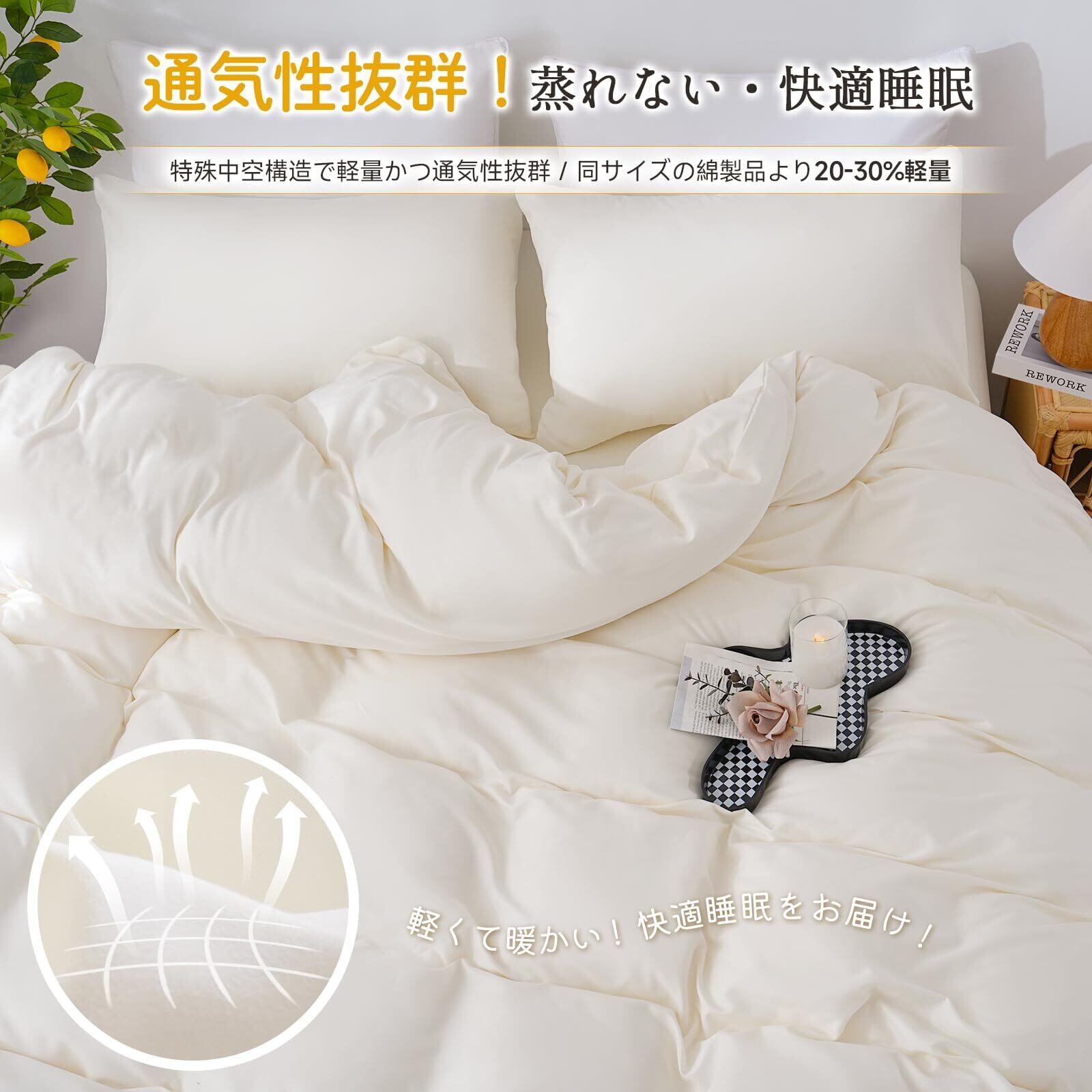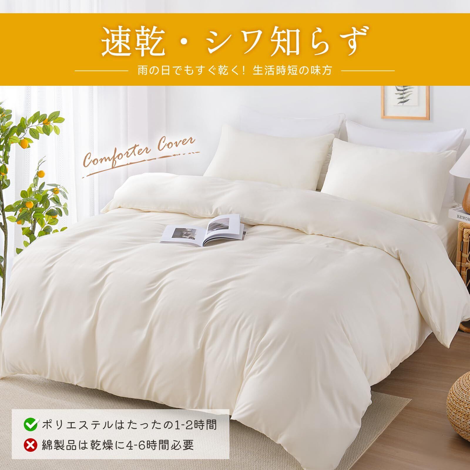 【優れた温度調節機能と通気性】 この掛け布団カバーは季節を問わず快適な睡眠を提供する温度調節機能を備えています。夏は余分な熱を逃がし、冬は体温を逃がさないよう設計された特殊繊維を使用。さらに、優れた吸湿性と通気性により、寝汗や湿気を素早く吸収し発散させます。これにより、一年中快適な寝心地を実現し、質の高い睡眠をサポートします。蒸れや不快感を感じることなく、朝まで心地よい眠りを楽しめます。