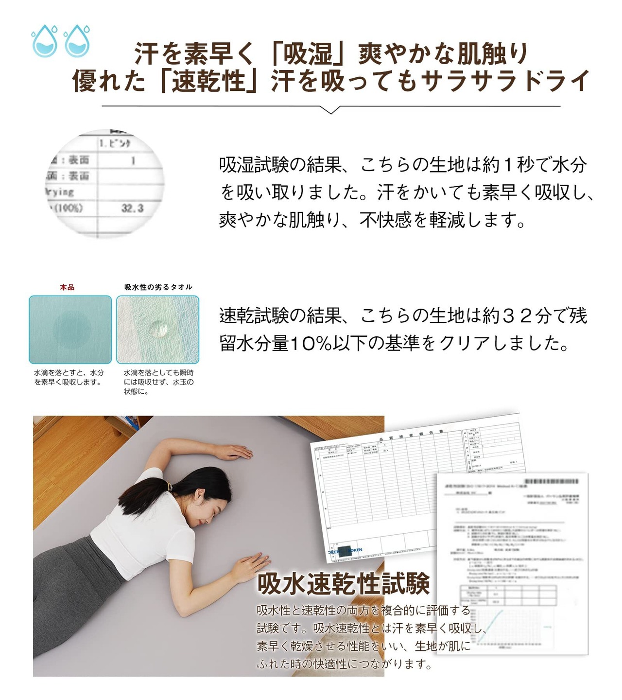 【0秒瞬間吸水&速乾&いつも清潔】マットレスカバーは通気性と吸湿・放湿性が優れて、特に夏の場合は、汗をかいても素早く湿気を吸い取り発散してくれるので、いつでもサラサラとした状態が保てます。ご家庭の洗濯機で手軽にお手入れができるので、常に清潔に、快適にお使いいただけます。お洗濯の後シワになりにくいからお手入れも簡単。