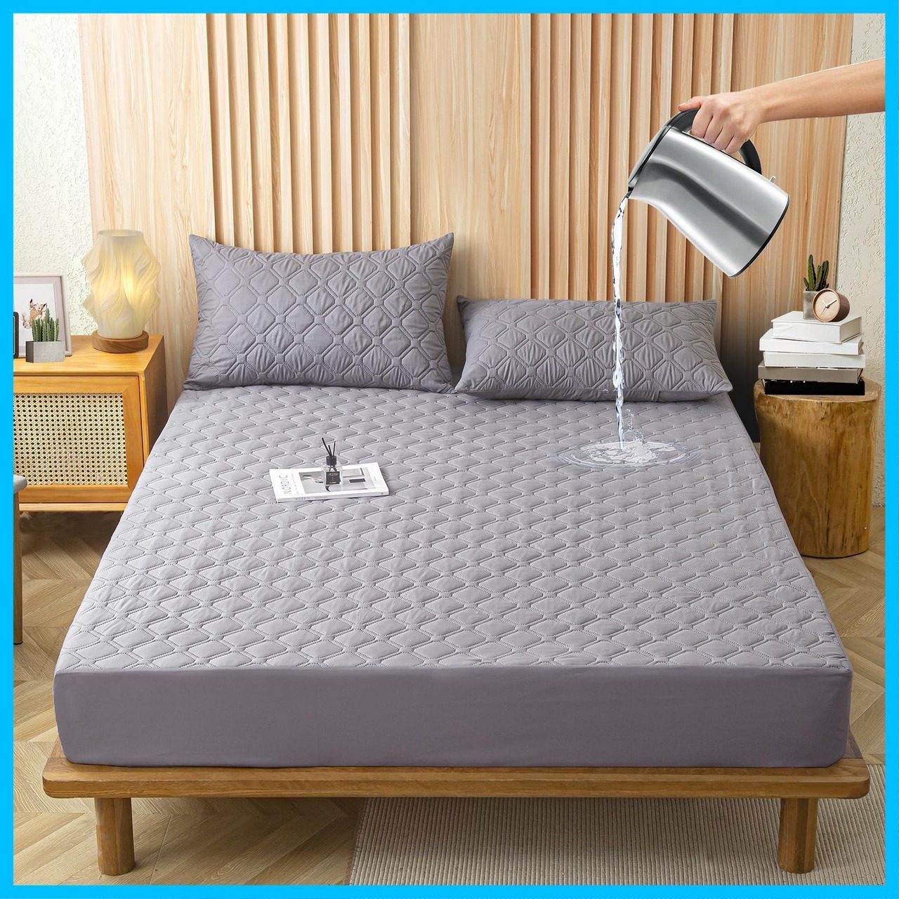 【全周ゴム保護&幅広い使用可能】:防水ボックスシーツ 全周ゴム付け、マットレスを全面的にカバーし、シワが出にくく、着脱も簡単。寝返りをしてもズレ落ちる心配がありません。毎朝時間をかけて整理する必要がありません。忙しい毎日だから、使いやすい。面倒家事も短縮できます。複数のサイズが選べ、市販されているほとんどのマットレスに適しています。メモリースポンジ、ラテックス、またはばねマットレスに完全にフィットします。