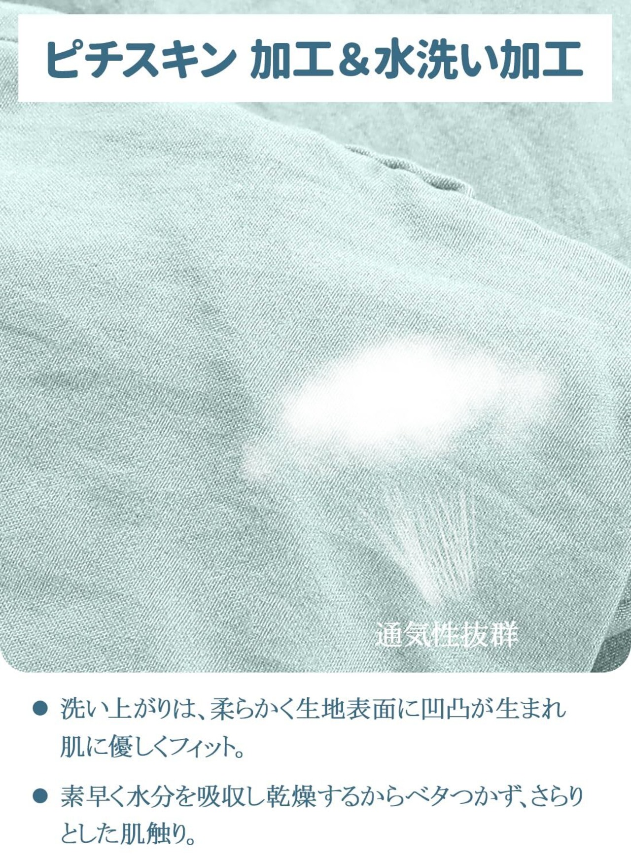 (洗いざらし&速乾性)の掛け布団カバーには、肌触りの良さにこだわったピーチスキン加工を施しています。きめ細かな起毛により、まるで桃のようにやわらかく、なめらかな風合いをお楽しみいただけます。さらに、水洗い加工を加えることで、より自然なやわらかさに仕上げました。一般的なピーチスキン素材よりも柔らかく、毛玉やほつれができにくいのが特長です。また、静電気も起きにくいため、使い始めたその日から、まるで長年愛用してきたかのような心地よさを感じていただけます。