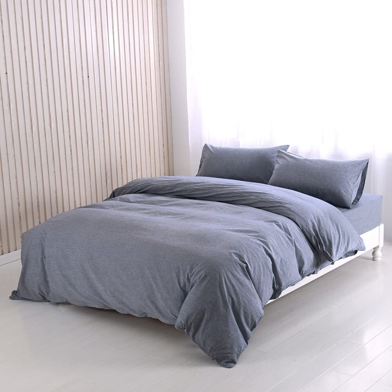 【オーガニックコットン洗いざらしの綿100%】デニムの色として人気のインディゴブルー、洗いざらし仕上げにより最初から肌になじむように仕上げました。洗濯後のシワも味わいになる洗いざらしの綿です。洗いざらし綿はまるでお洋服のようで、使い込んだ綿だけが持つ風合いに、肌に優しくなじむ柔らかな肌ざわりです。