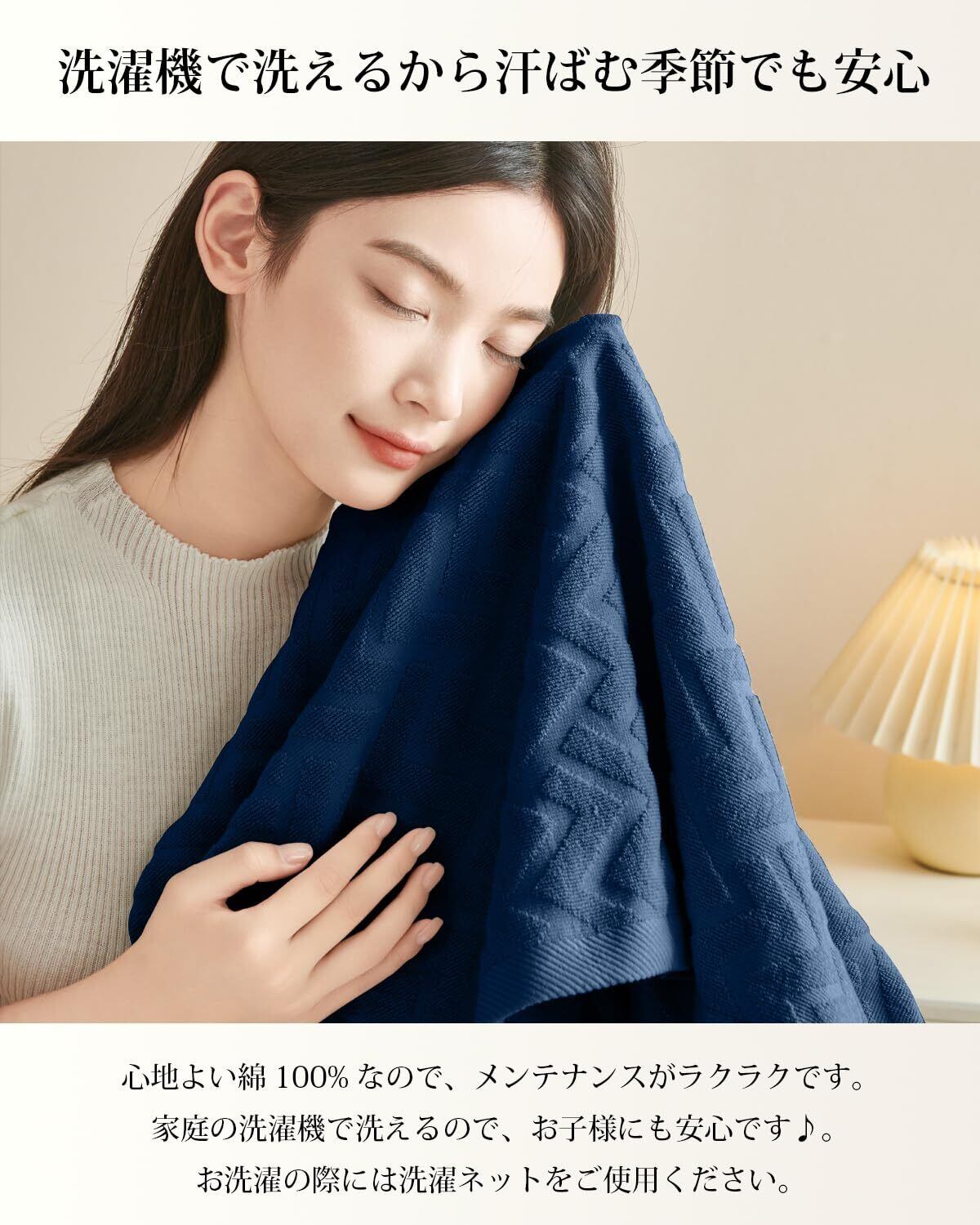 HOSUR タオルケット シングル 夏用 ブランケット 綿100% 柔らかい ふんわり 柔らかく 洗える 吸湿速乾 抗菌防臭 オールシーズン快適 (ネイビー 140*190cm)