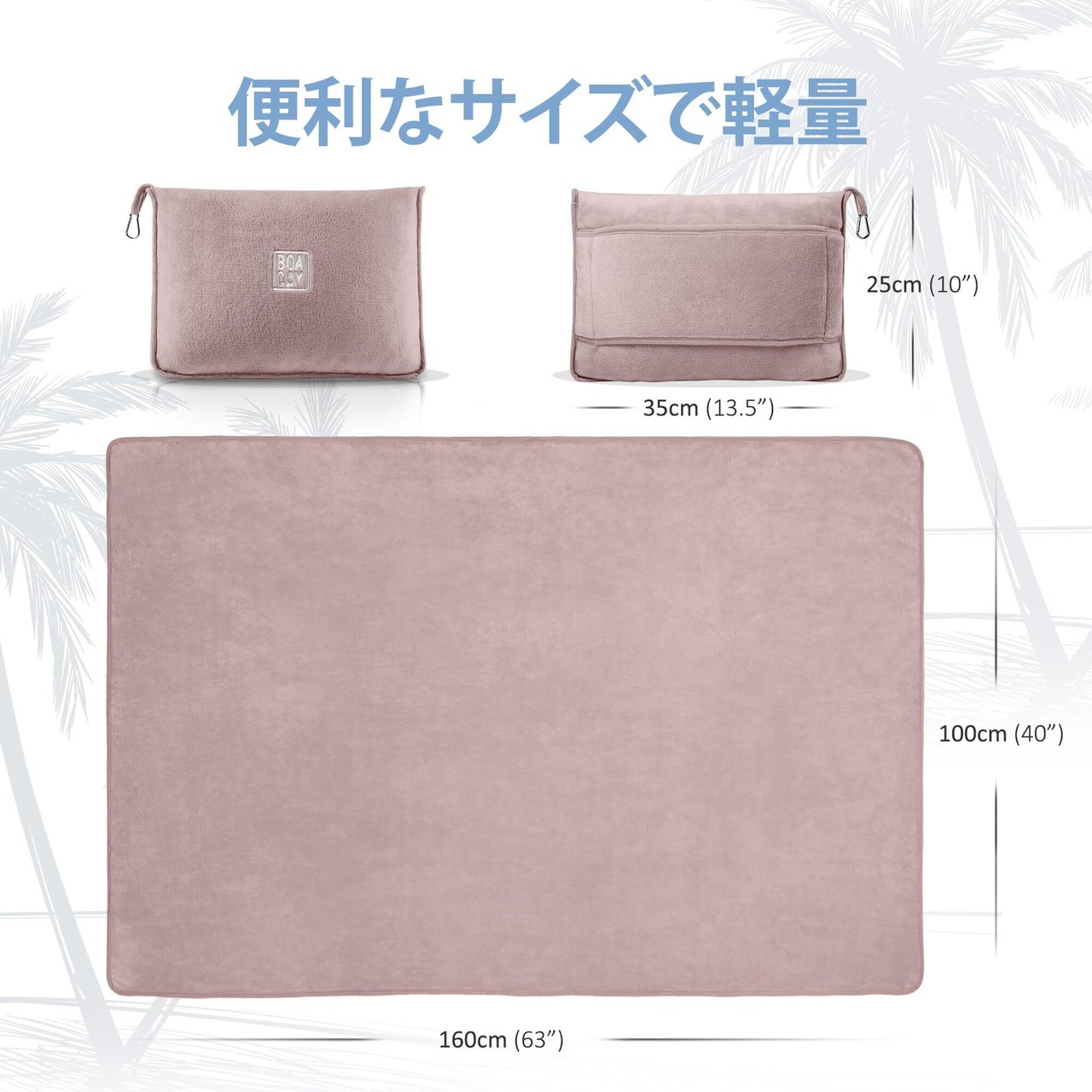 【数量限定】[BOACAY] 飛行機や車用の柔らかくて暖かい旅行用ブランケット - 女性、男性、子供にとっての長距離フライトの必需品 - 持ち運びに便利なスーツケースベルトとバックパッククリップ付きのコンパクトな枕