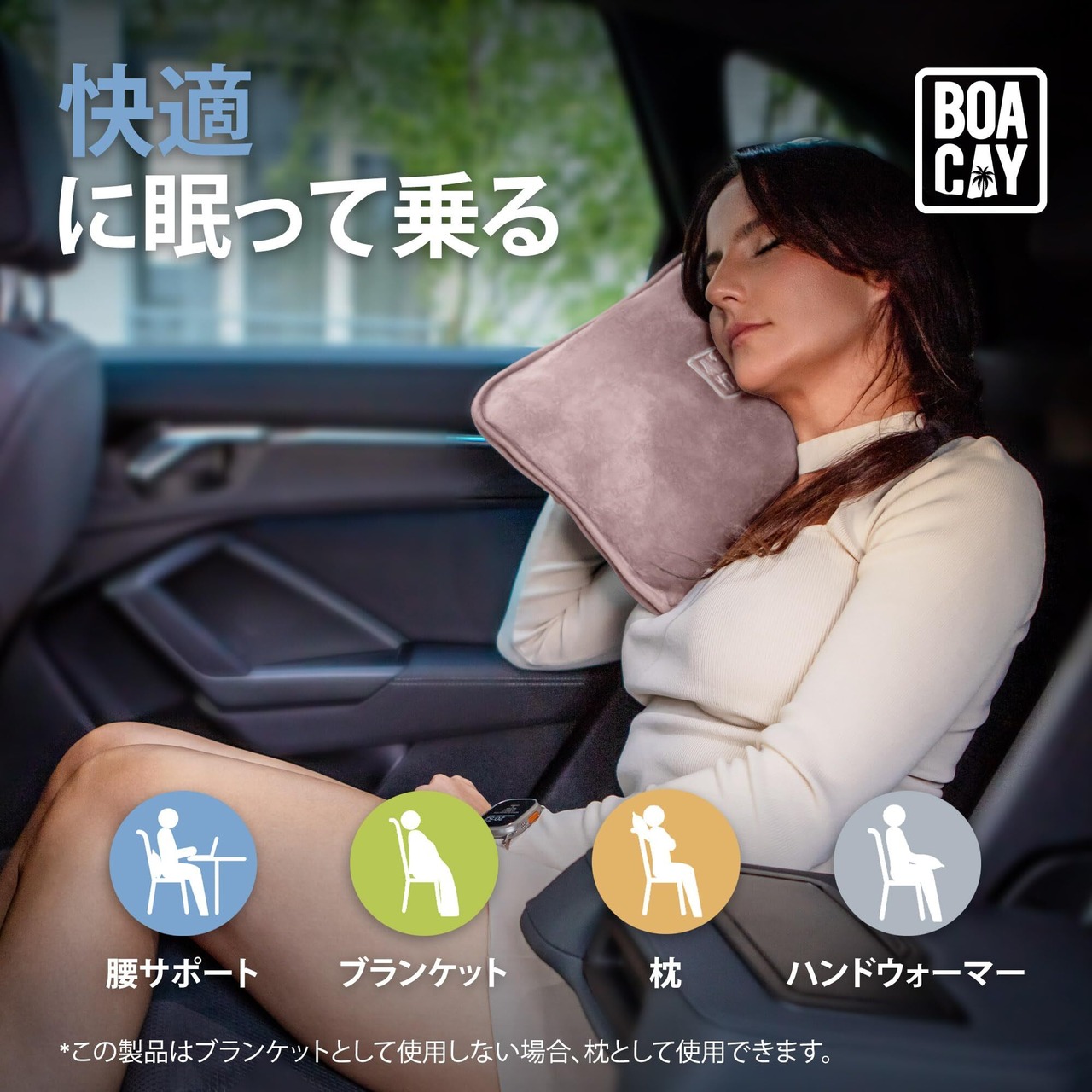 [BOACAY] 飛行機や車用の柔らかくて暖かい旅行用ブランケット - 女性、男性、子供にとっての長距離フライトの必需品 - 持ち運びに便利なスーツケースベルトとバックパッククリップ付きのコンパクトな枕
