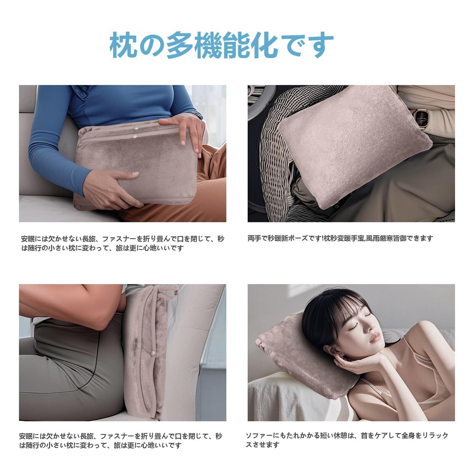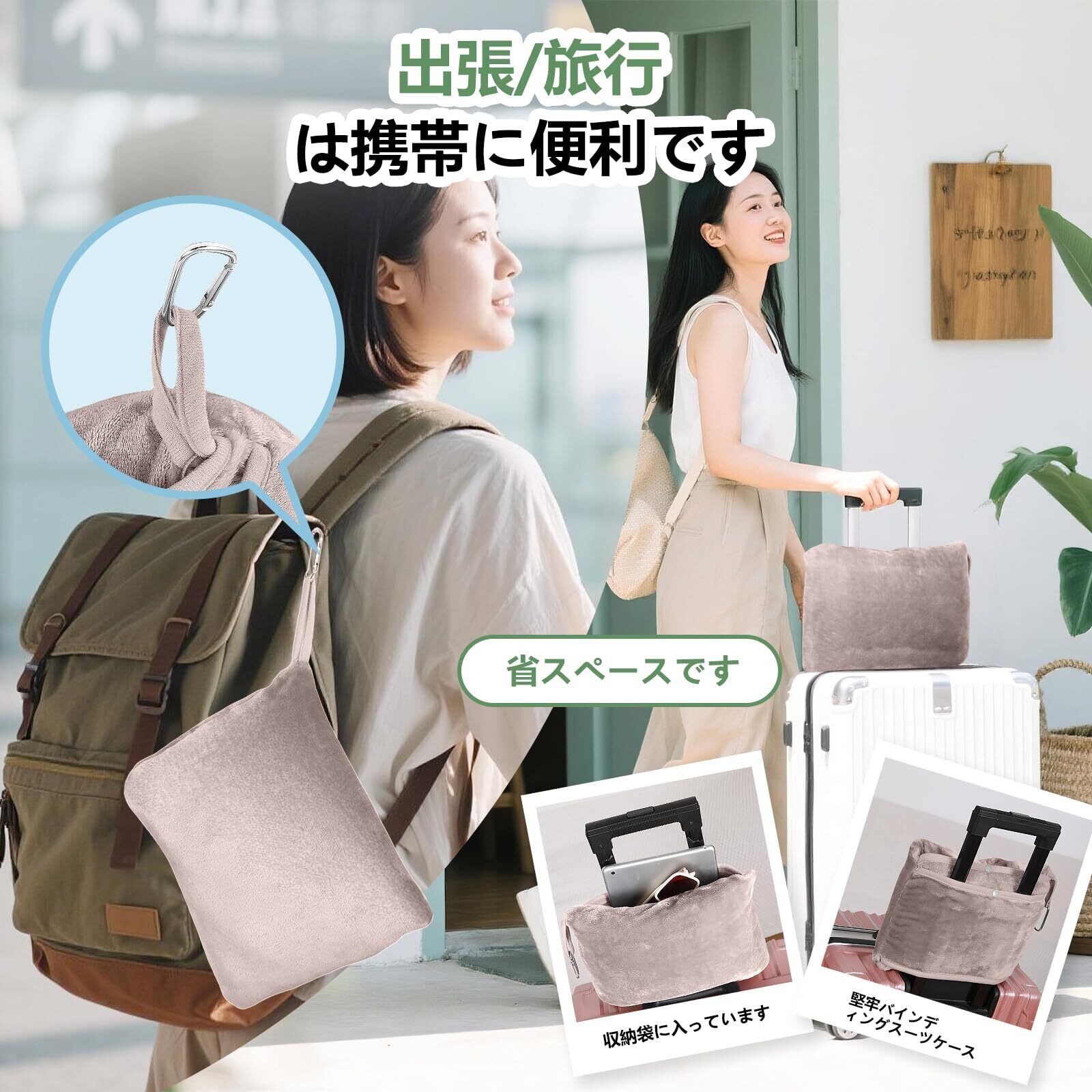 Willers飛行機 車用 オフィス用 柔らかい毛布、ひざ掛け、肩掛け、出張、旅行、キャンプ ブランケット 夏、持ち運びや収納に便利なBlanket、くるんと収納 コンパクト 携帯 クッションになる 枕 2way 暖かいトラベルブランケット90*120cm(グレーピンク)