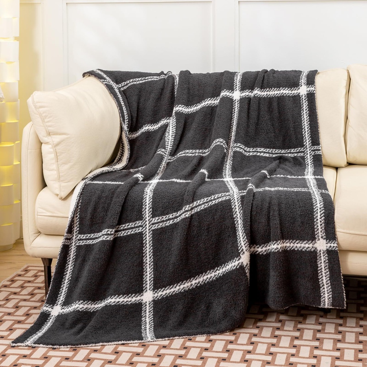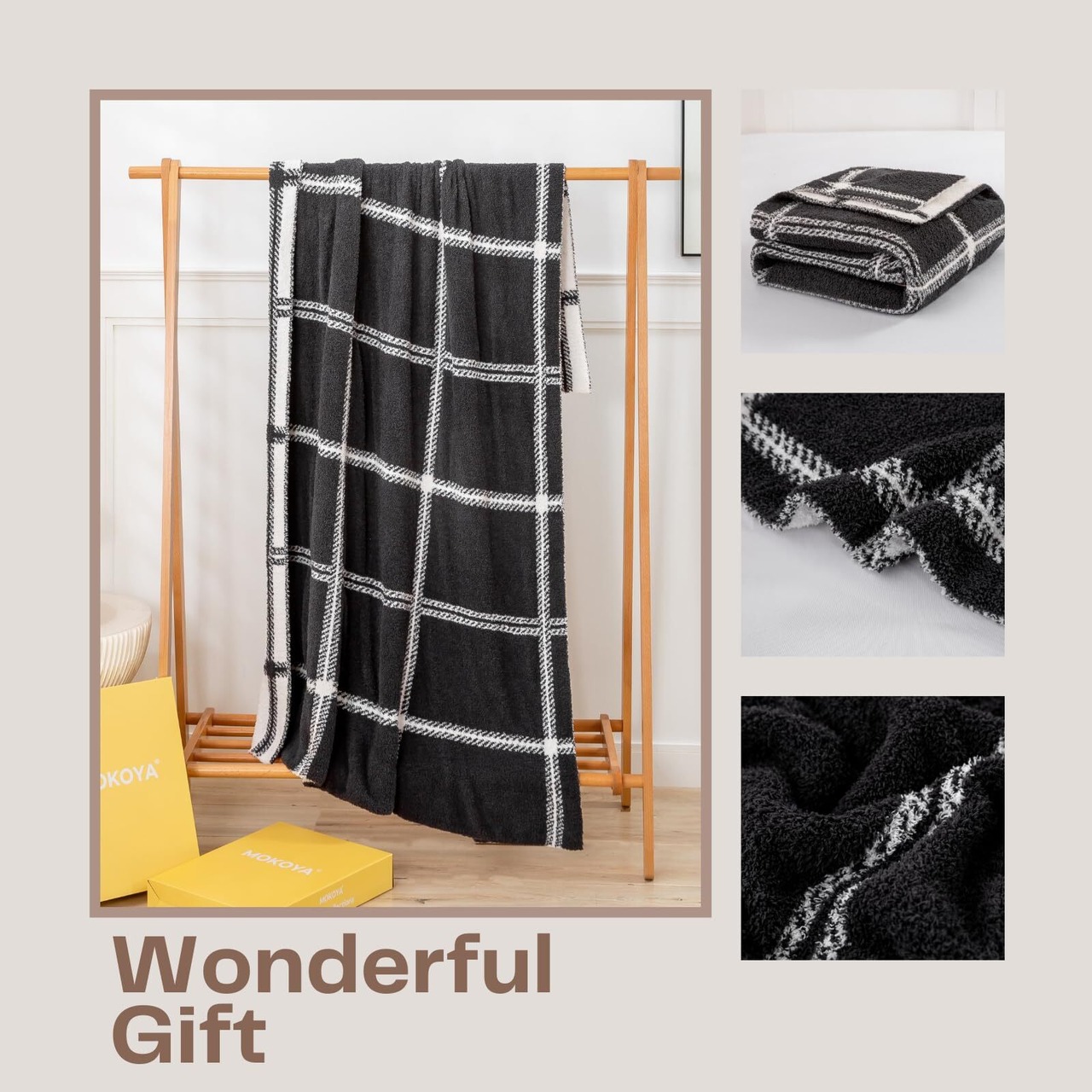 Mokoya おしゃれ ブランケット もこもこ 毛布 夏用 可愛い タオルケット シングル リバーシブル 掛け毛布 膝掛け 大判 プレゼント (チェック柄黒, 130x180cm)