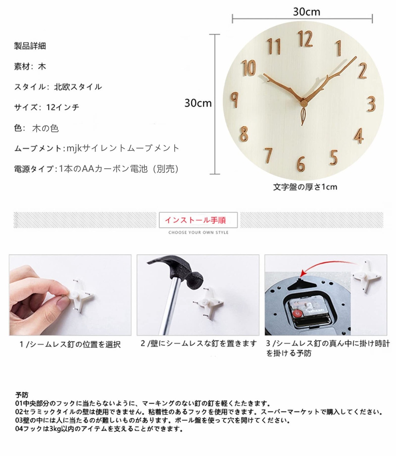 1.【製品仕様】:サイズ30cm*30cm*1cm、重量350g、材質:MDF密度ボード+木製ポインター+立体数字、単三カーボン電池1本(別売り)
