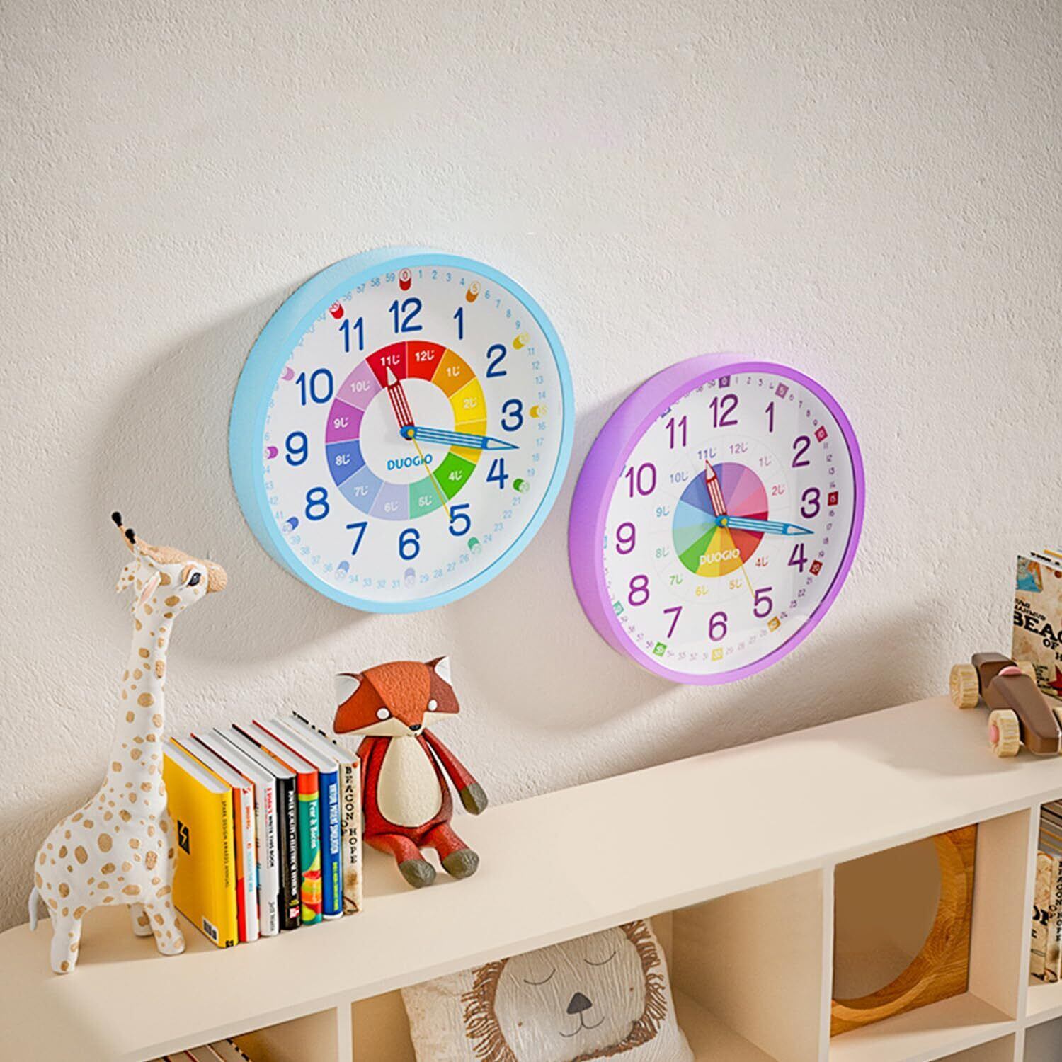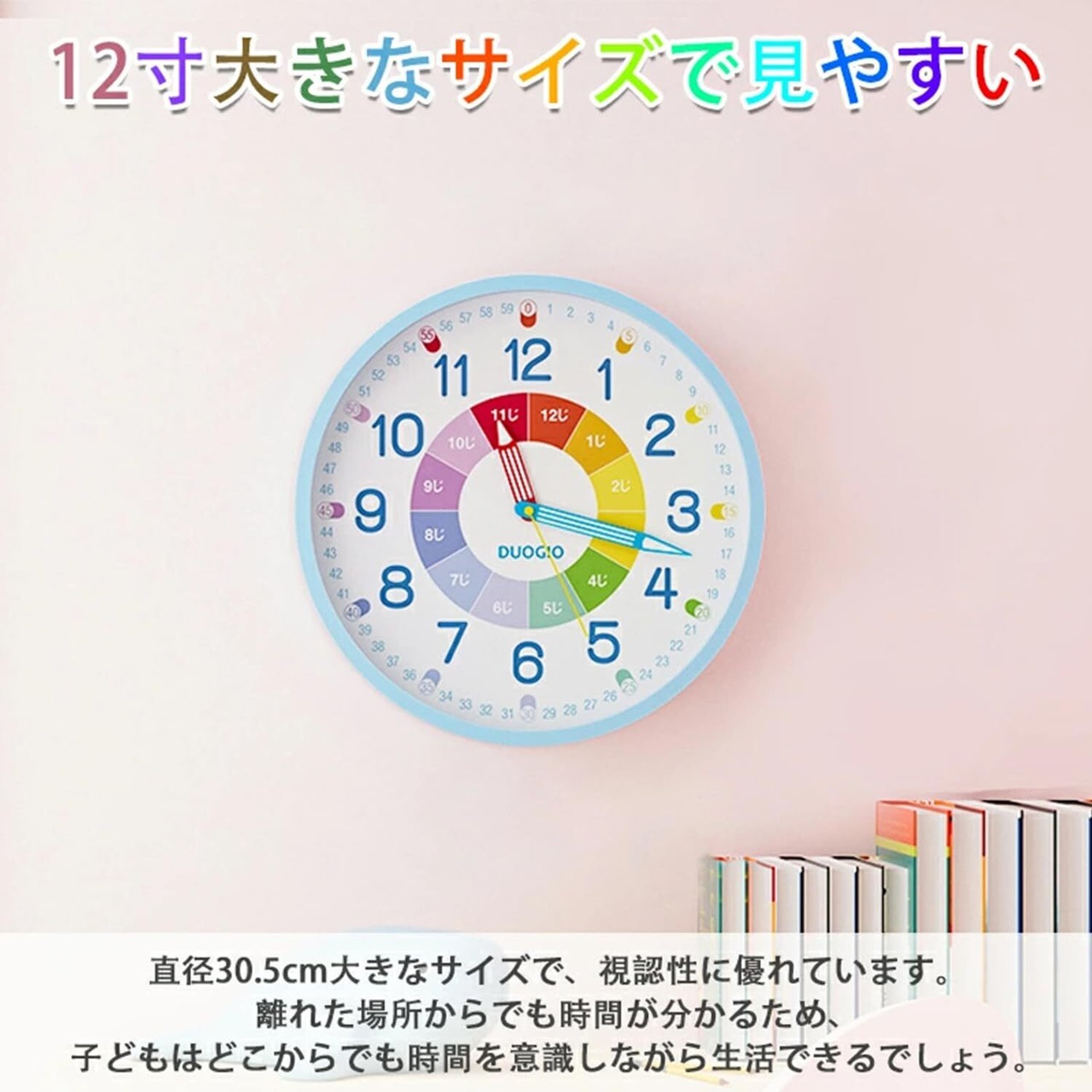 DUOGIO 掛け時計 直径30cm 子供 知育時計 アナログ 単三電池式 見やすい時計 鉛筆形指針 アナログ 連続秒針 静音 ガラス鏡面 非電波 キッズルーム・リビング・教室・図書館など スカイブルー