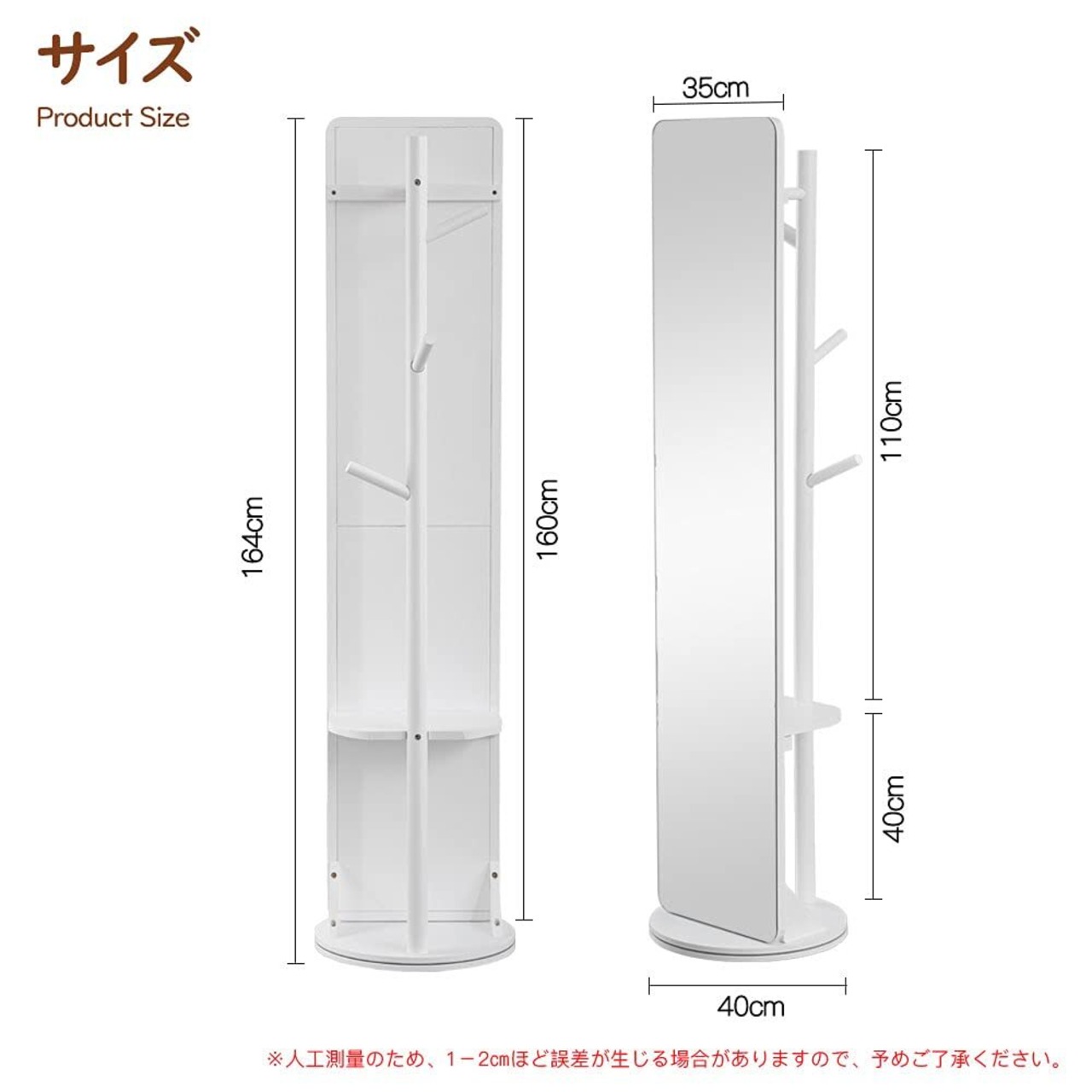 MiraHope 全身鏡 全身ミラー ハンガー付ミラー 洋服収納 回転ミラー 姿見 おしゃれ ミラー付き回転ハンガー163*40CM ホワイト
