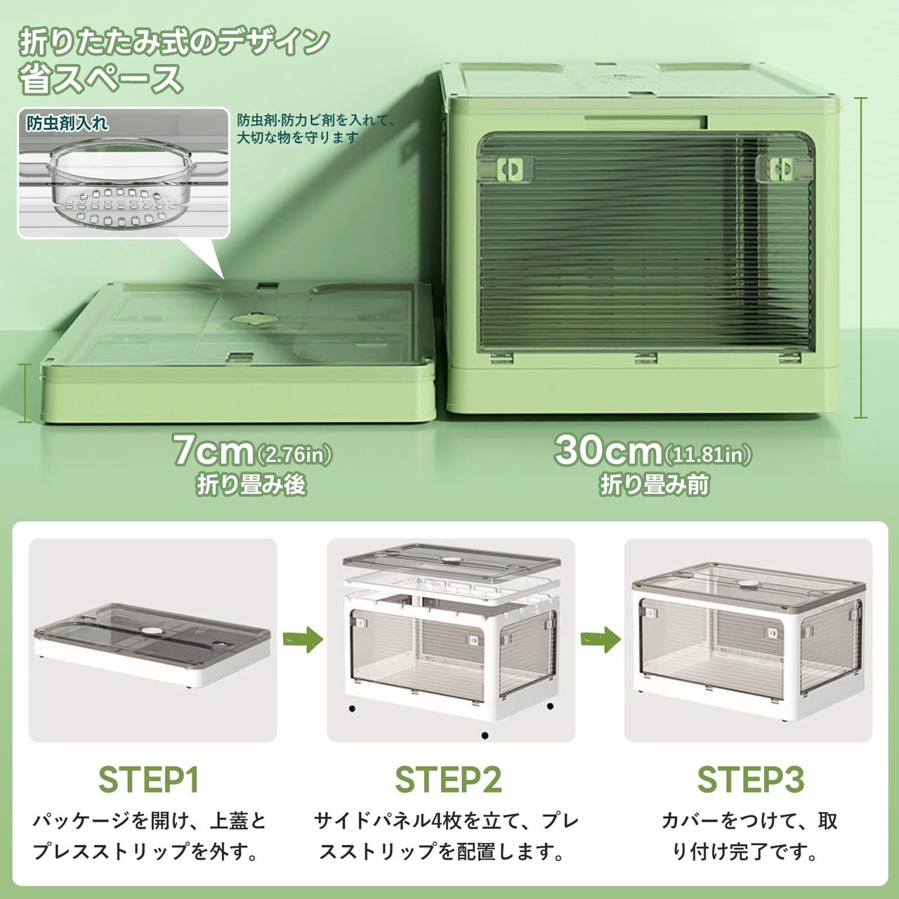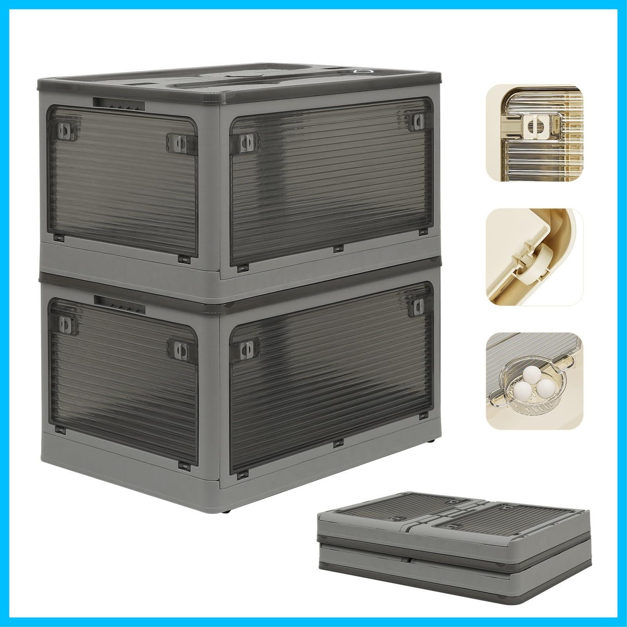 Freely 多機能折りたたみ収納ボックス 積み重ね可能 蓋付き 大容量 キャスター付き 防塵防湿防虫 ABS樹脂 家庭用/車載/アウトドア対応 5面開閉式 簡単組み立て 衣類・布団・本・食品収納 XL(60×42×33.5)cm,84.5L