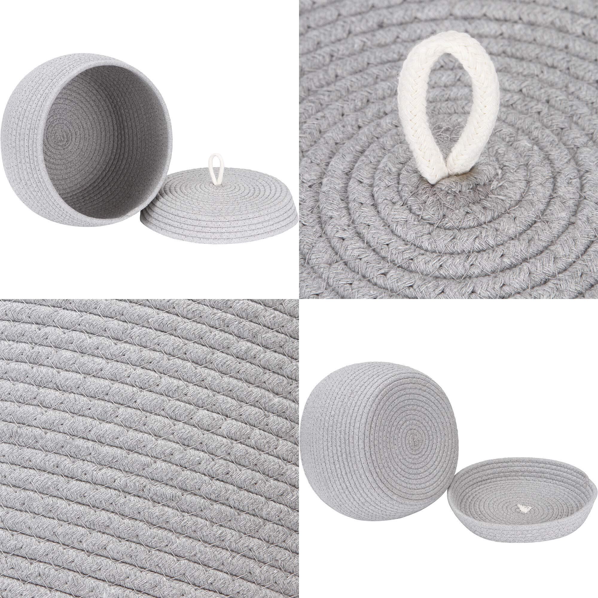 Sea Team 収納バスケット 収納ボックス 収納かご バスケット ふたつき コットンロープバスケット 化粧品収納バスケット 小物入れ 靴下 パンツ 収納 装飾用 多用途 編み込み かわいい オフィス収納 部屋収納 円形(25x25x19cm グレー)