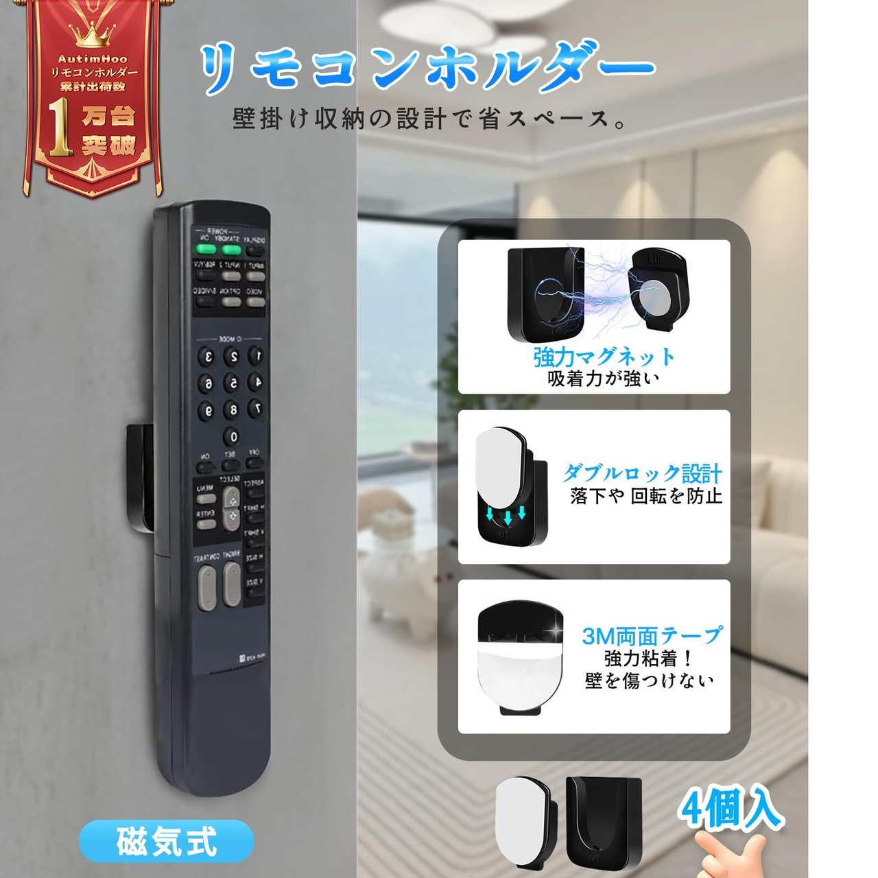 特徴 穴開け不要, 壁掛け, 磁気リモコンホルダー
