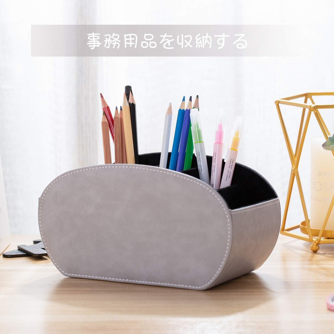 リモコンラック PUレザー 大きいサイズ リモコン収納 テーブル 5格仕切り リモコンスタンド おしゃれ 防水 多機能収納ボックス 大容量 文房具 卓上小物 (グレー, 改良モデル)