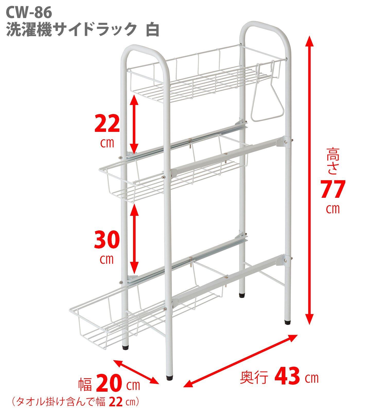 平安伸銅工業 HEIAN SHINDO ランドリーサイドラック ホワイト アジャスター付き 幅20×奥行43×高77cm CW-86