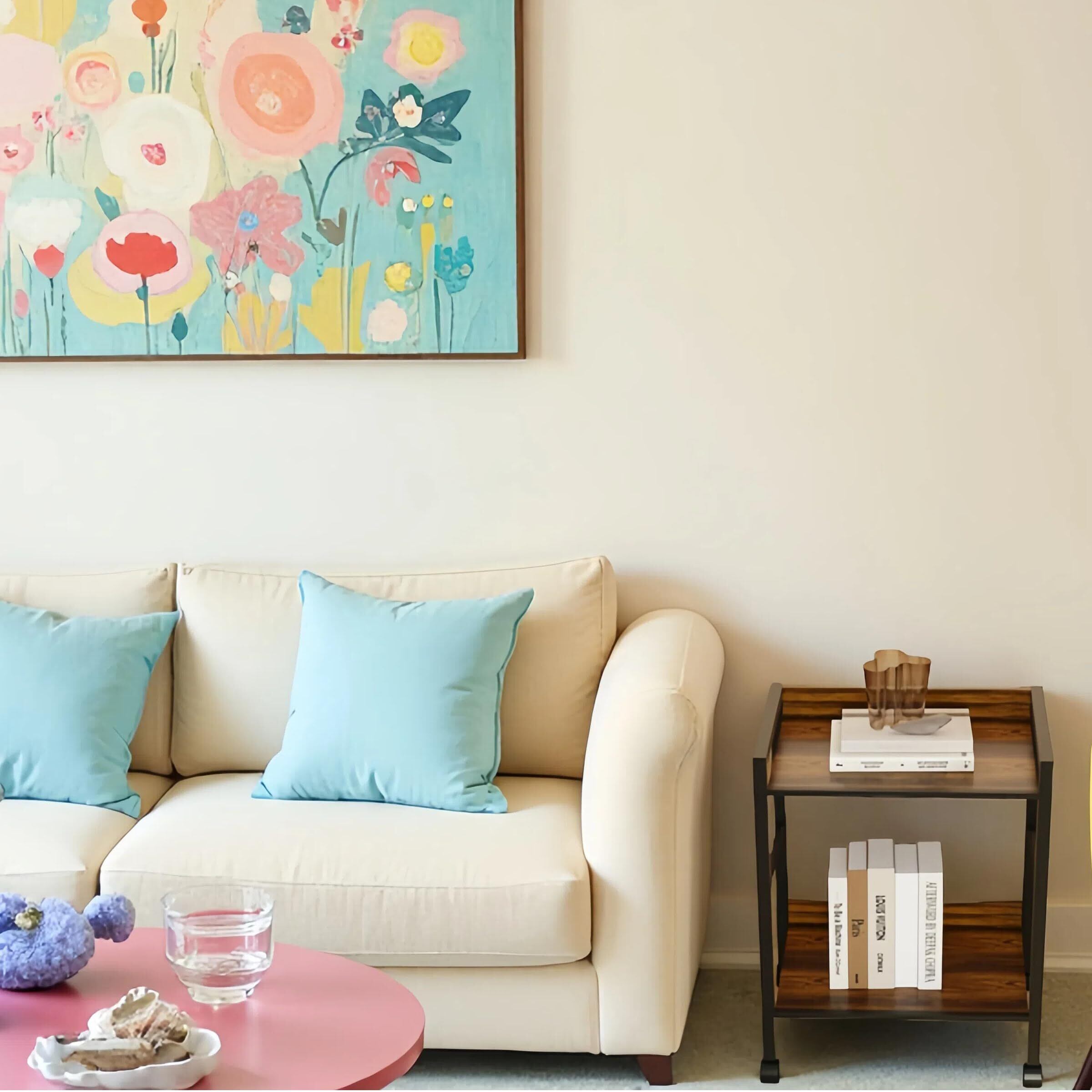 43 x 33 x 48cmインチのコンパクトなサイズで、寝室、リビング、玄関などの狭いスペースに最適なサイドテーブルです。