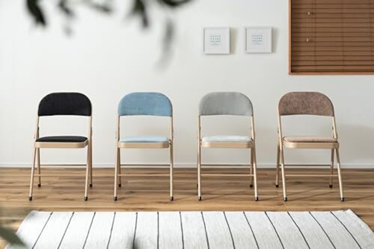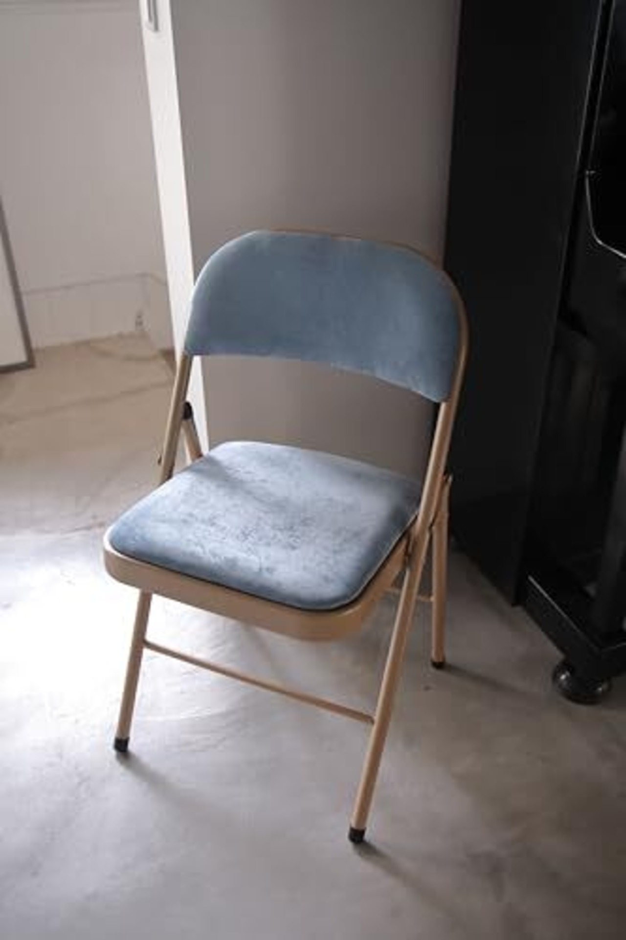 ヴィンテージチェアの雰囲気を演出するためにパイプのカラーリング、ファブリックにこだわったフォールディングチェアです。座面、背もたれはクッションが効いていて、見た目以上に座りやすくなっております。普段使いはもちろんですが、急な来客時にすぐに出せるオシャレな椅子としてもおすすめです。