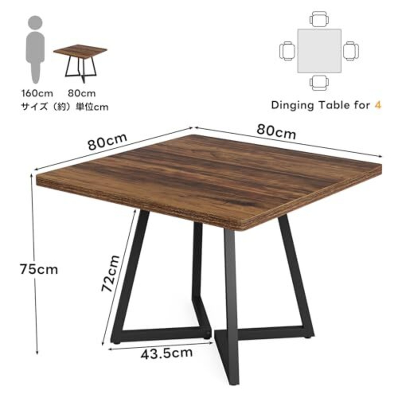 Tribesigns ダイニングテーブル 幅80cm 単品 正方形 食卓 テーブル 二人用 木制 ブラウン/ブラック おしゃれ