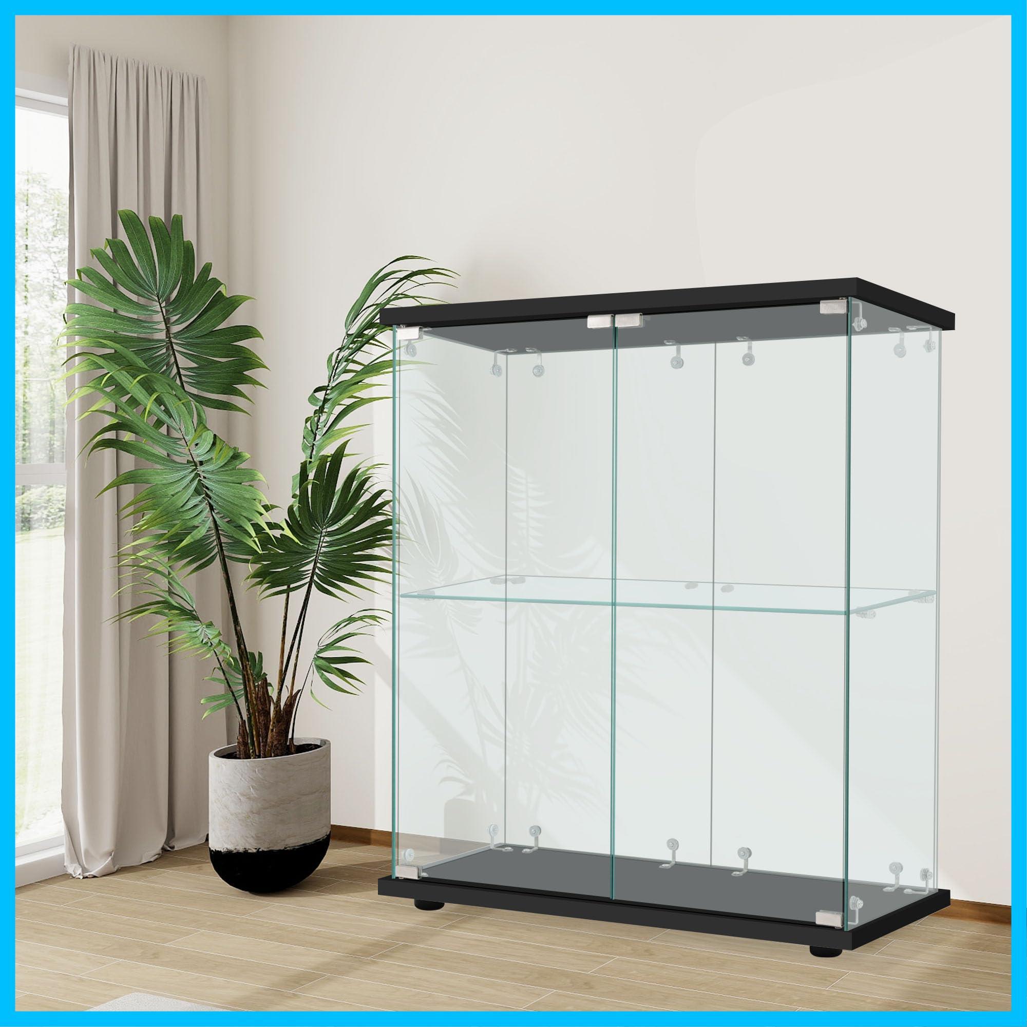 【ブラック】OSJ コレクションケース 両扉タイプ 大型 ワイドタイプ ガラスディスプレイキャビネット フィギュアケース 2段 強化ガラス サイズ:幅80.5×奥行36.5×高さ86cm
