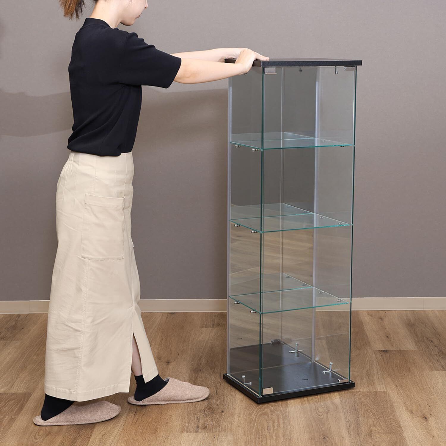 不二貿易 コレクションケース フィギュアケース 4段 幅39×奥行30×高さ119.5cm ブラック 強化ガラス 全面ガラス 組立商品 クリア スリム BAAL 63932