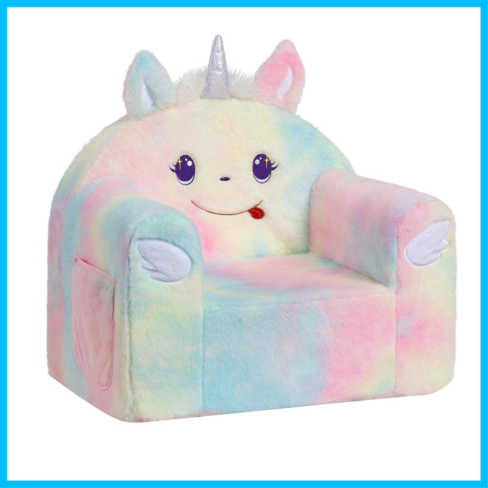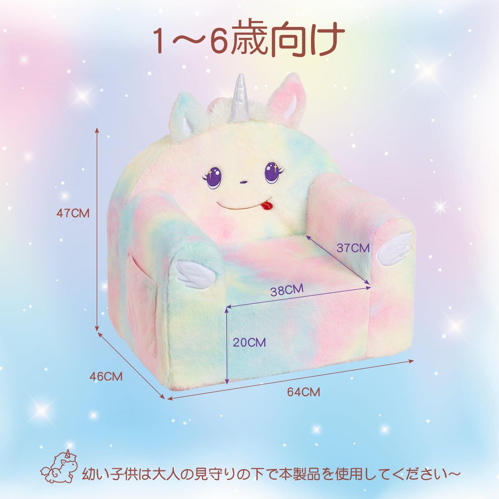 ALIMORDEN キッズソファ 子供用ソファー ベビーチェア 赤ちゃん座椅子 座れるぬいぐるみ コンパクト ふわふわ 背もたれ付き プレゼン 動物 ユニコーン