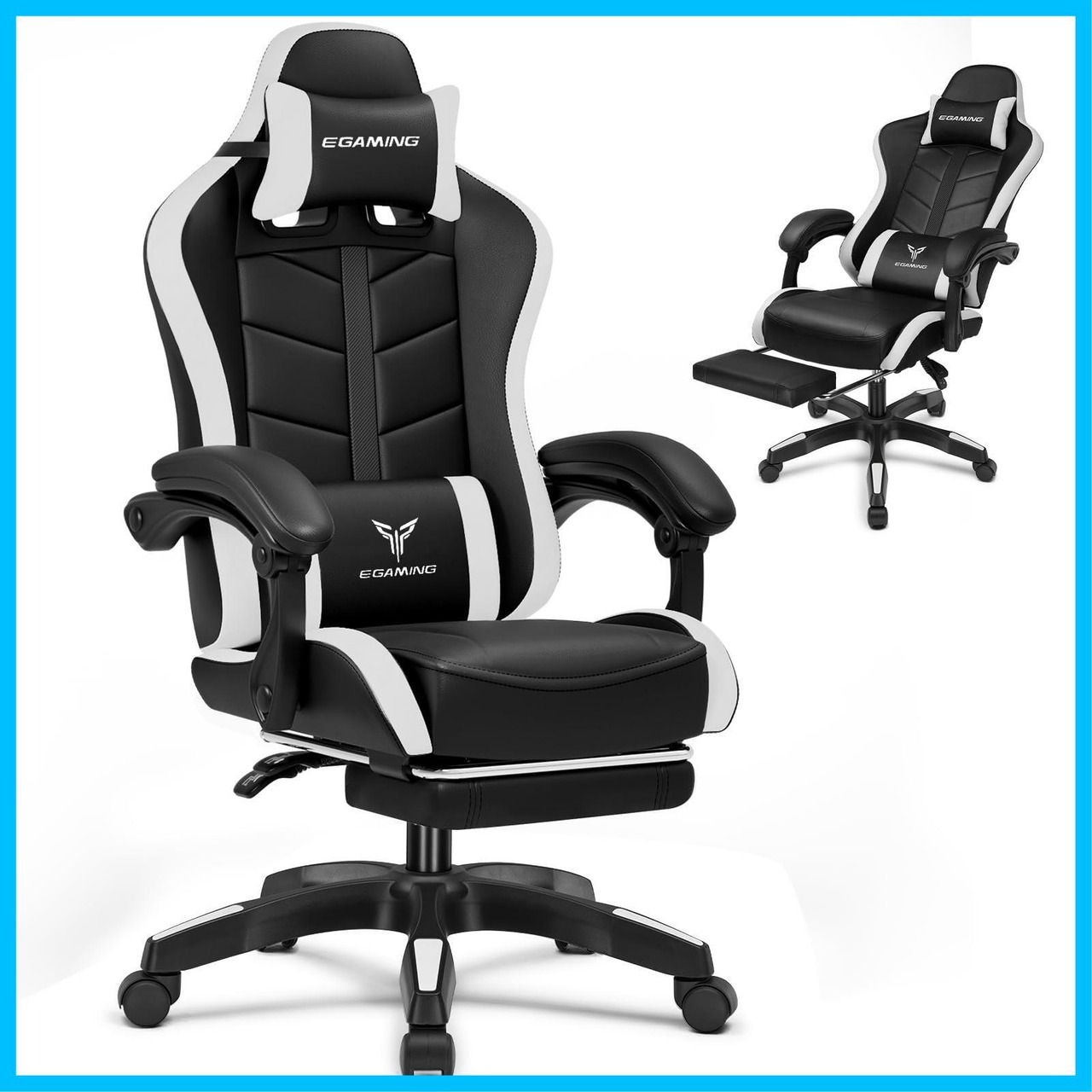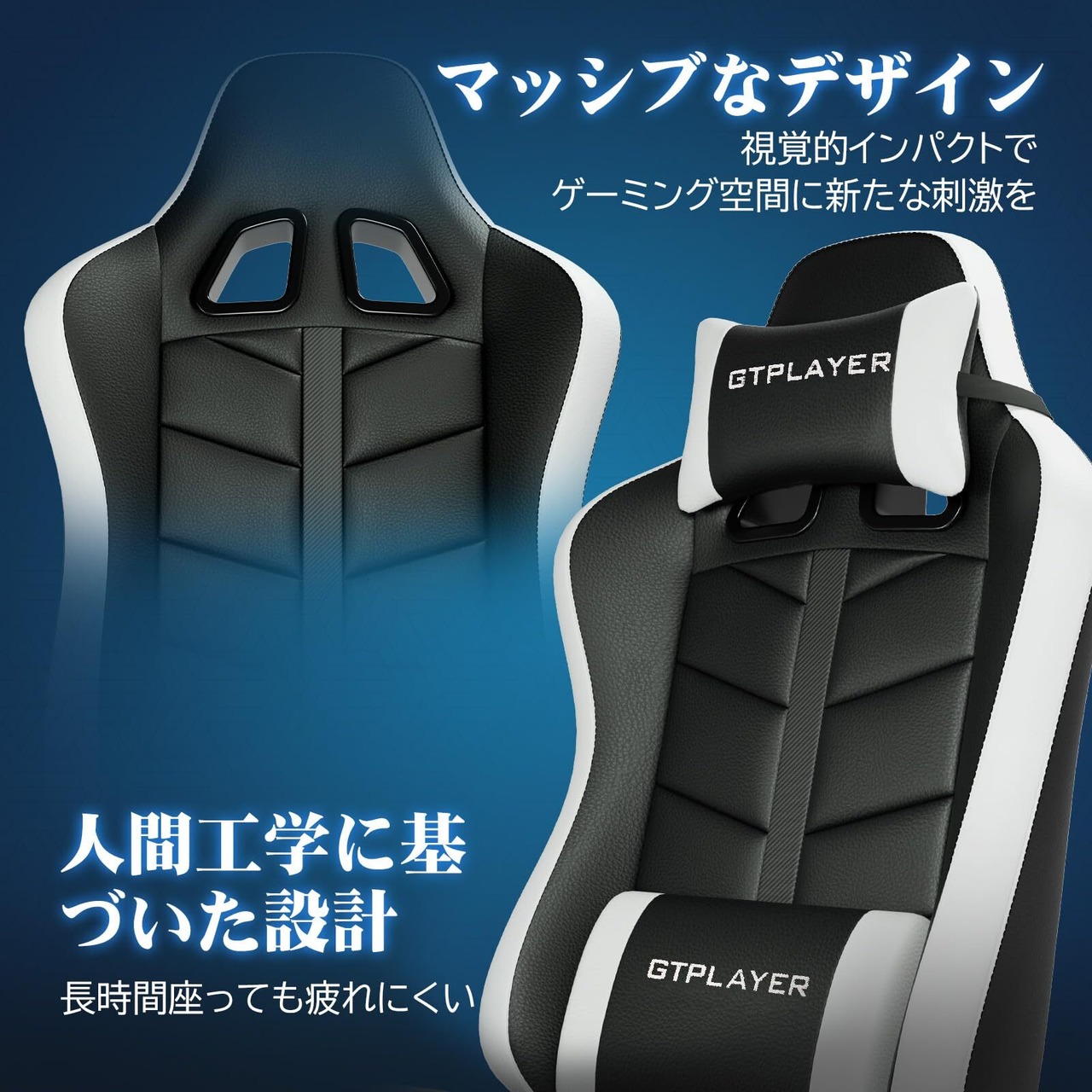 LUCKRACER ゲーミングチェア デスクチェア pcチェア 椅子 テレワーク 腰痛対策 145°リクライニング 一体式オットマン付き 疲れない ゲームチェア ハイバック ランバーサポート PUレザー EG910F-WHITE