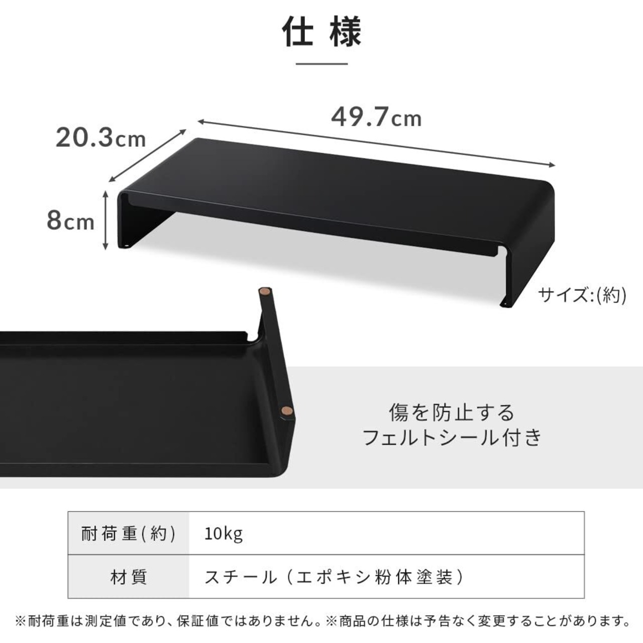 耐荷重:約10kg(※耐荷重は測定値であり、値ではありません。)