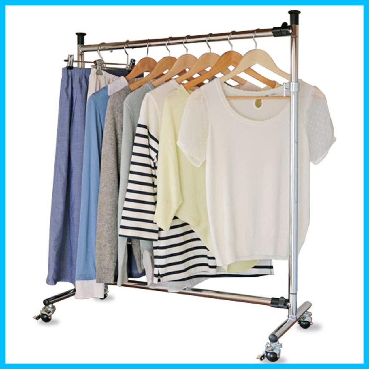 スペースや収納する衣類の量によって幅と高さを変えられる伸縮タイプ。