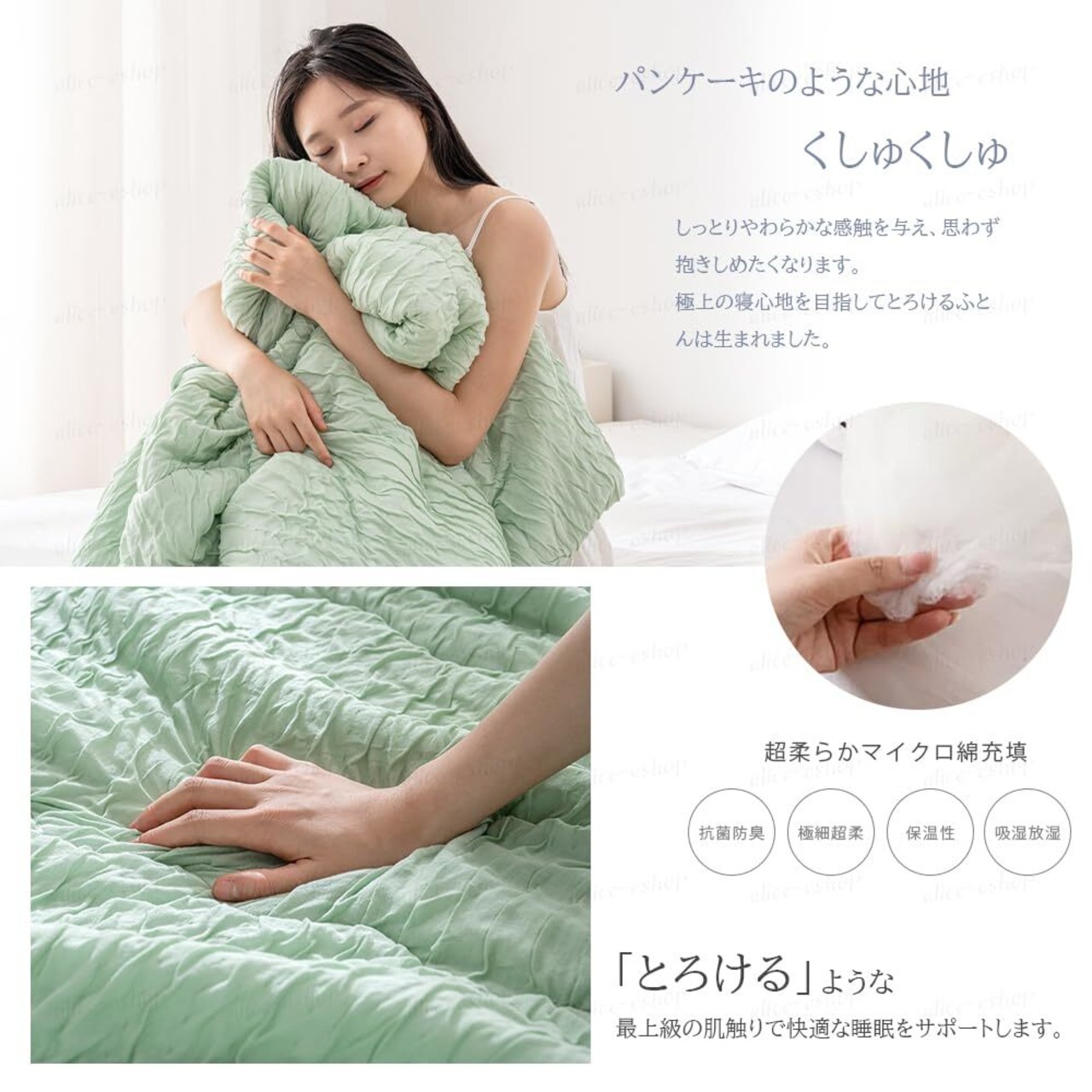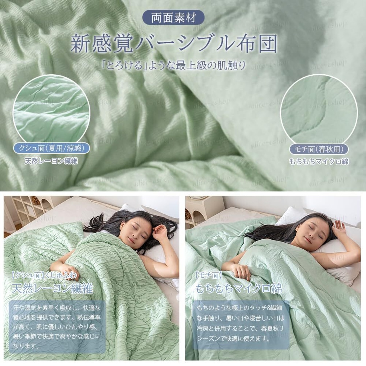 【2025新感覚りバーシブル布団】表層天然レーヨン繊維(接触冷感)+中綿(抗菌防臭中空繊維/超極細繊維)+裏層マイクロ綿(もちもち)、思わず抱きしめたくなるリバーシブル仕樣肌掛け布団です!「とろける」ような最上級の肌触りで快適な睡眠をサポートします。柔らかくて触れるだけでひんやりと感じます。極上の寝心地を目指してとろけるふとんは生まれました。
