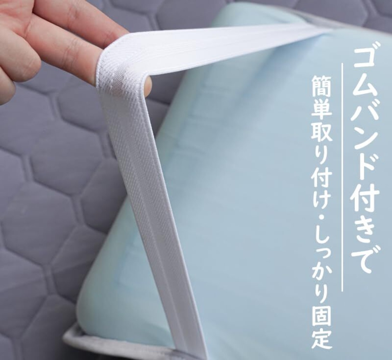 【防止ゴム付き】裏側には、耐久性高いゴムバンド2本を使用し、簡単に枕パッドを付け外すことができます。ズレ防止ゴム付きで、枕も枕パッドもしっかり固定できるので、寝返りが多くてもズレにくくて安心です。
