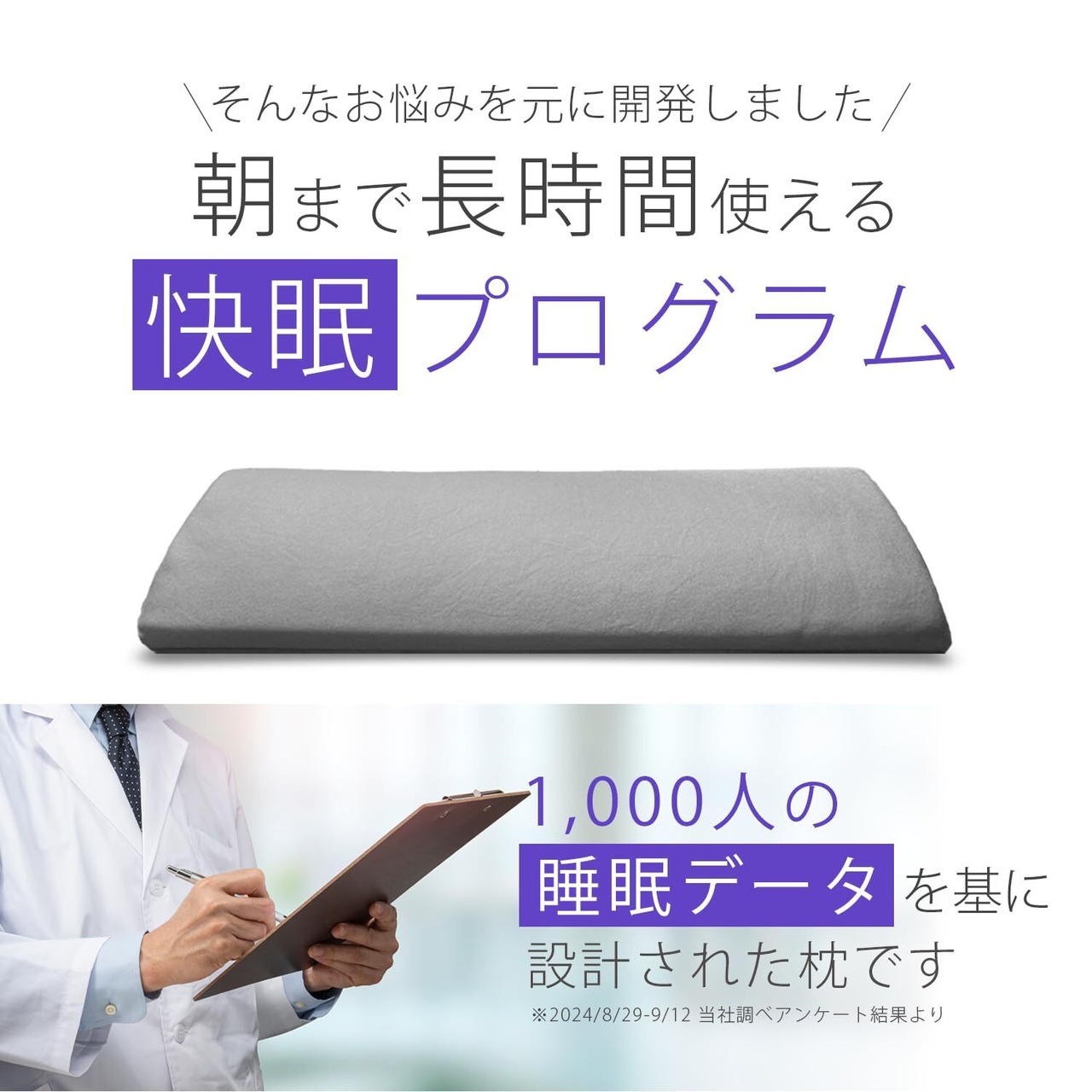 寝返りのしやすい横幅60cmのワイドサイズ。横長のフォルムが就寝中の動きと快適な眠りを妨げません。