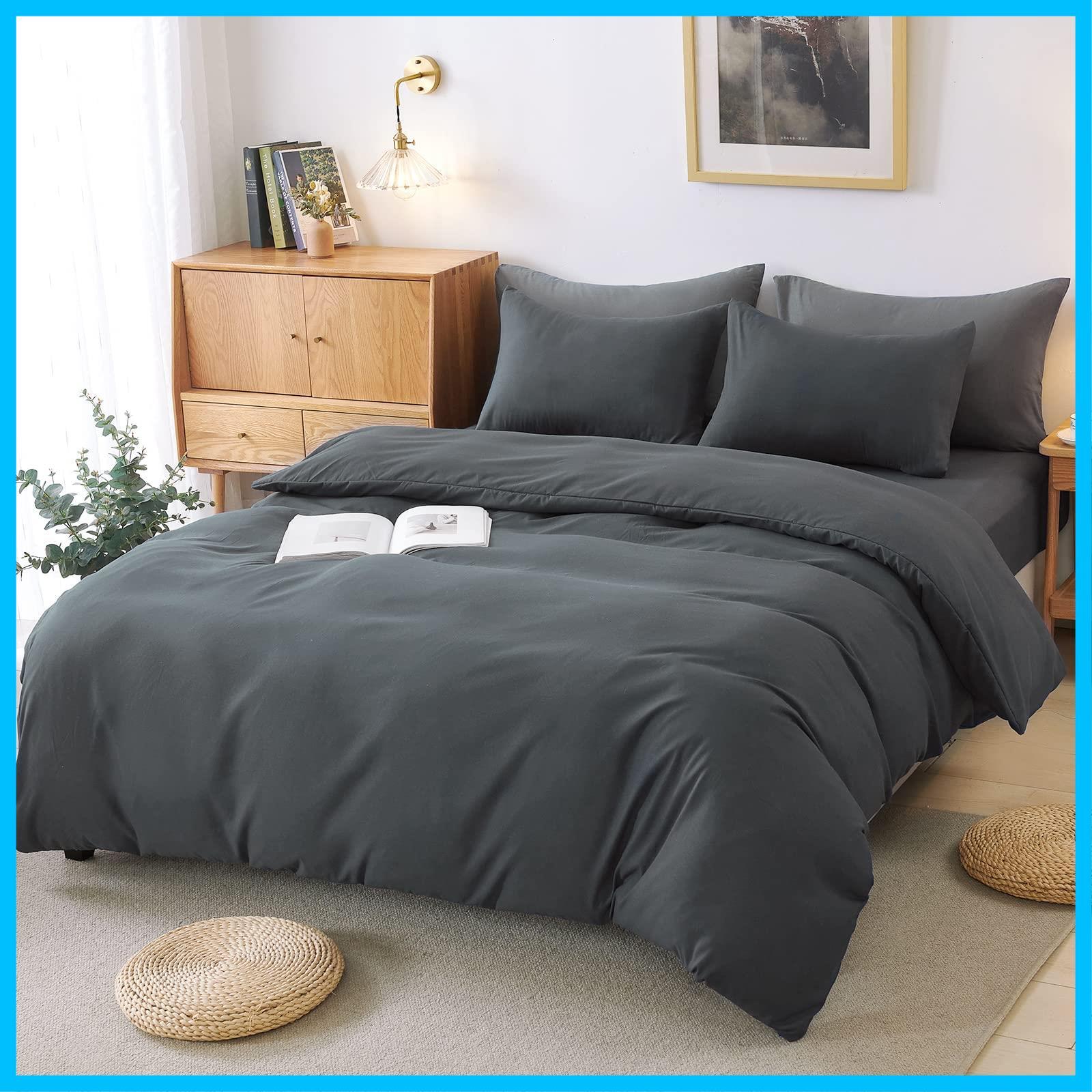 HOdo Home 布団カバー ダブル 4点セット 掛け布団カバー ベッドシーツ ベッドカバー ボックスシーツ 枕カバー 寝具カバーセット 洋式・和式兼用 洗い替え 速乾タイプ ピーチスキン加工 (ダークグレー ダブル)