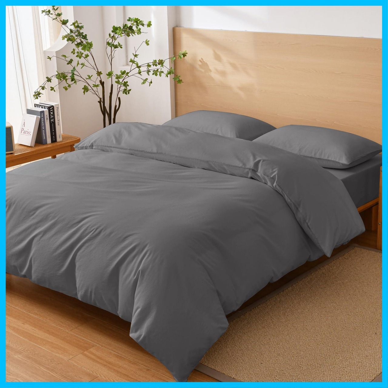 布団カバーセット 寝具カバーセット シングル 3点セット AYO 洗いざらし シワ加工 水洗い やわらか 掛け布団カバー ボックスシーツ 枕カバー 吸水速乾 丸洗いOK 肌に優しい 無地 シンプル オールシーズン(シングル・3点セット ダークグレー)